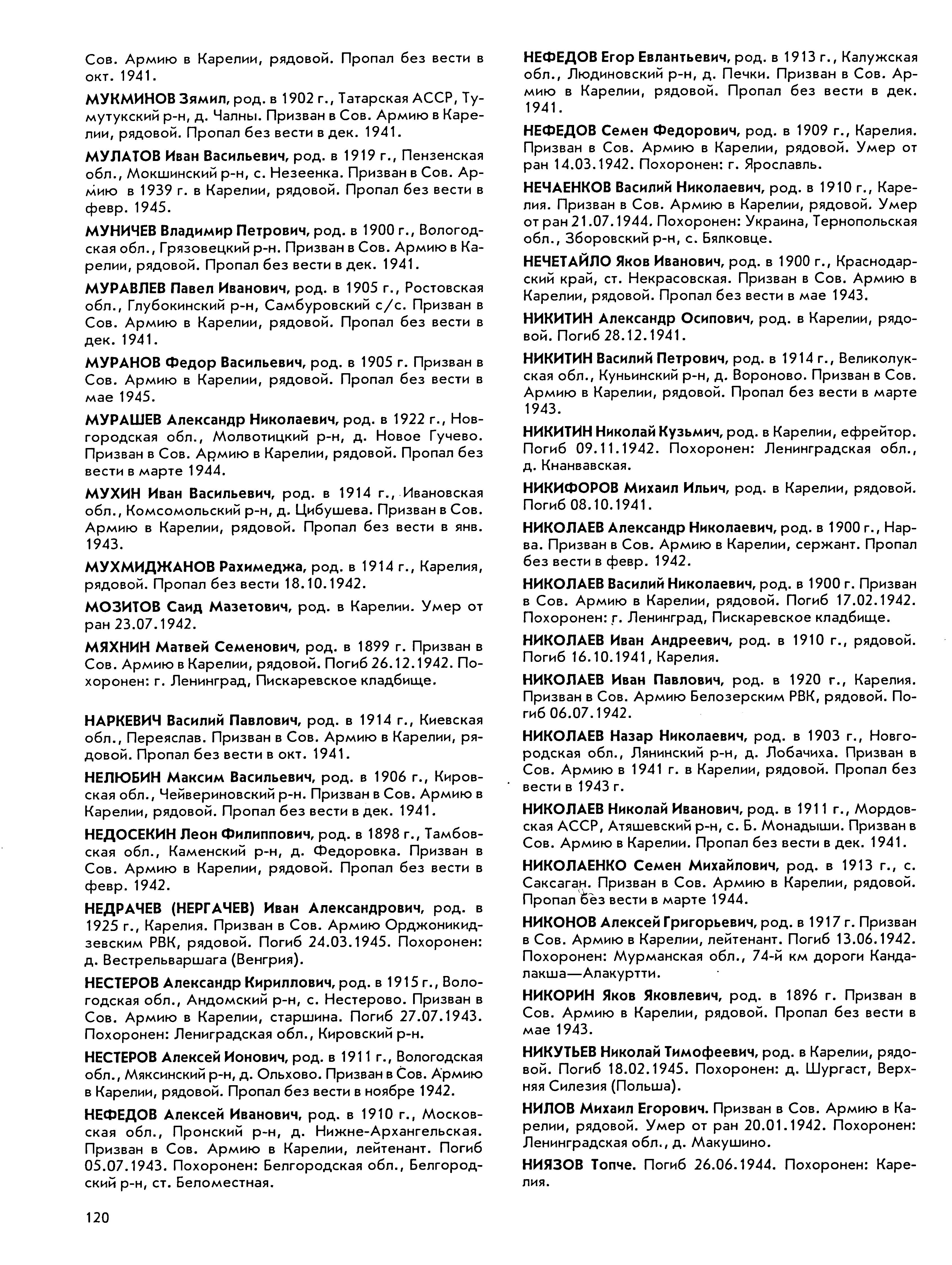 Книга памяти. Республика Карелия. Том 8. Страница 120 Перейти к списку
