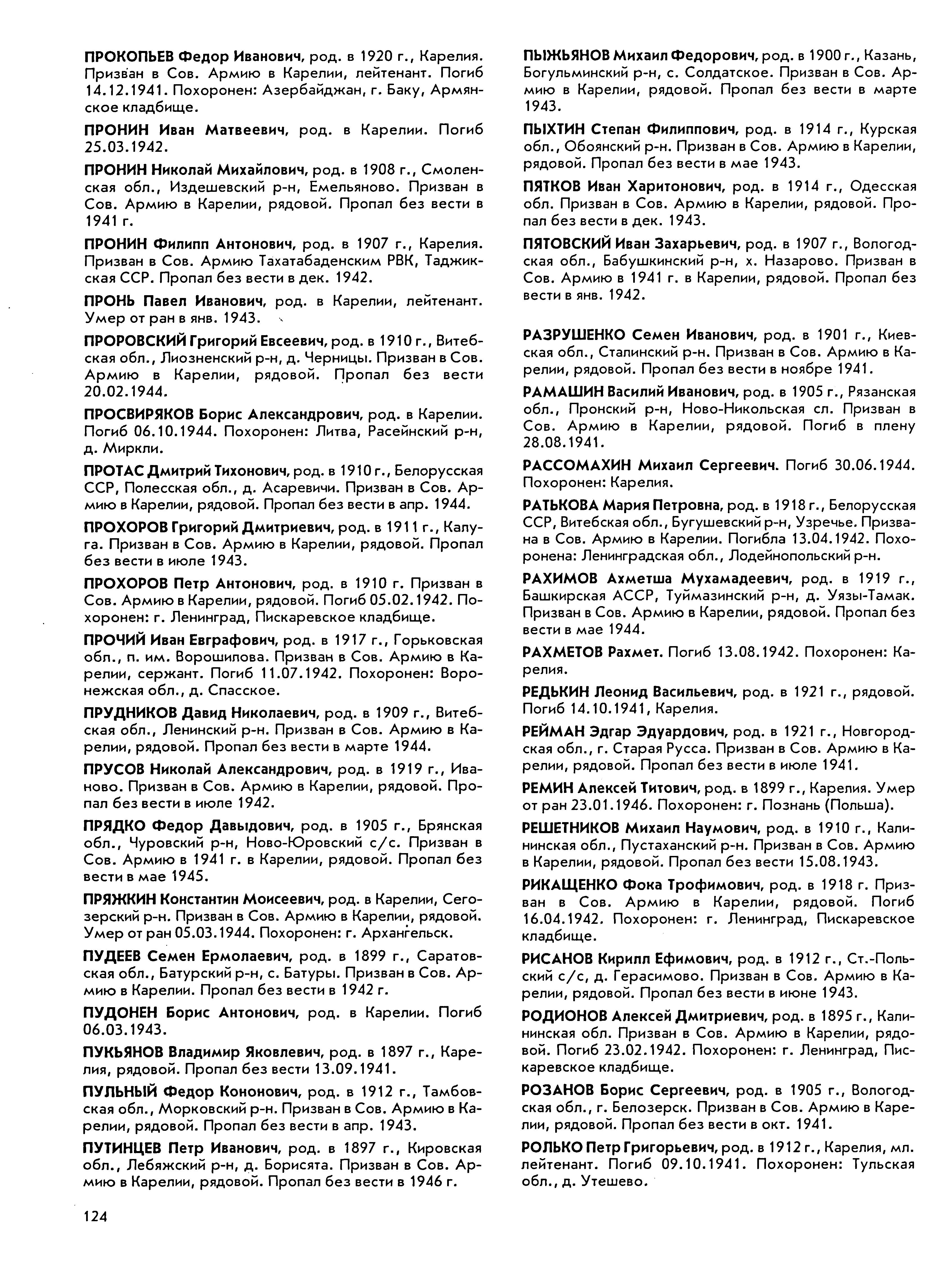 Книга памяти. Республика Карелия. Том 8. Страница 124 Перейти к списку