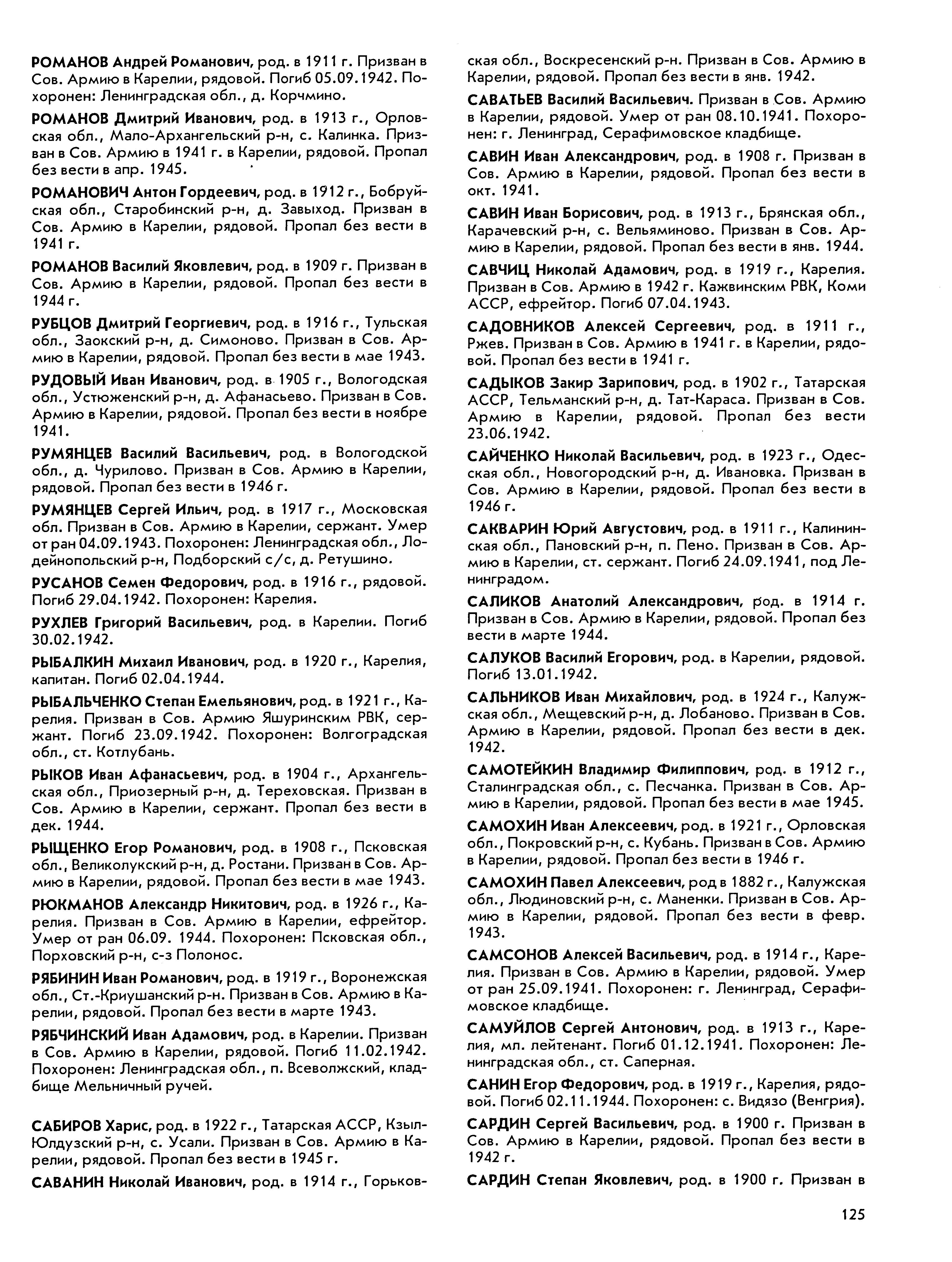 Книга памяти. Республика Карелия. Том 8. Страница 125 Перейти к списку