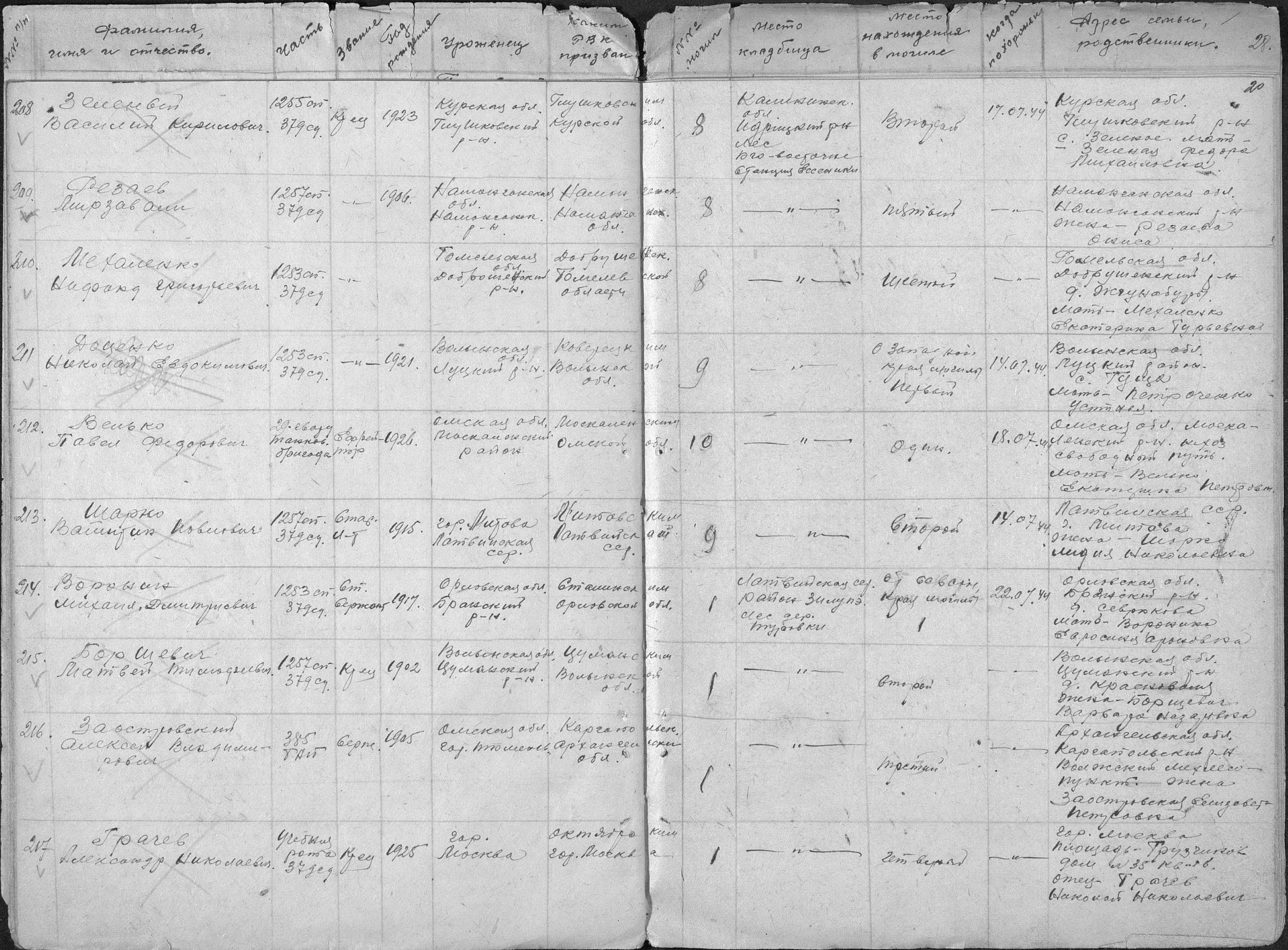 книга погребения. 01.01.1944-14.09.1944. Источник: 456 МСБ 379 сд. Страница 23 Перейти к списку