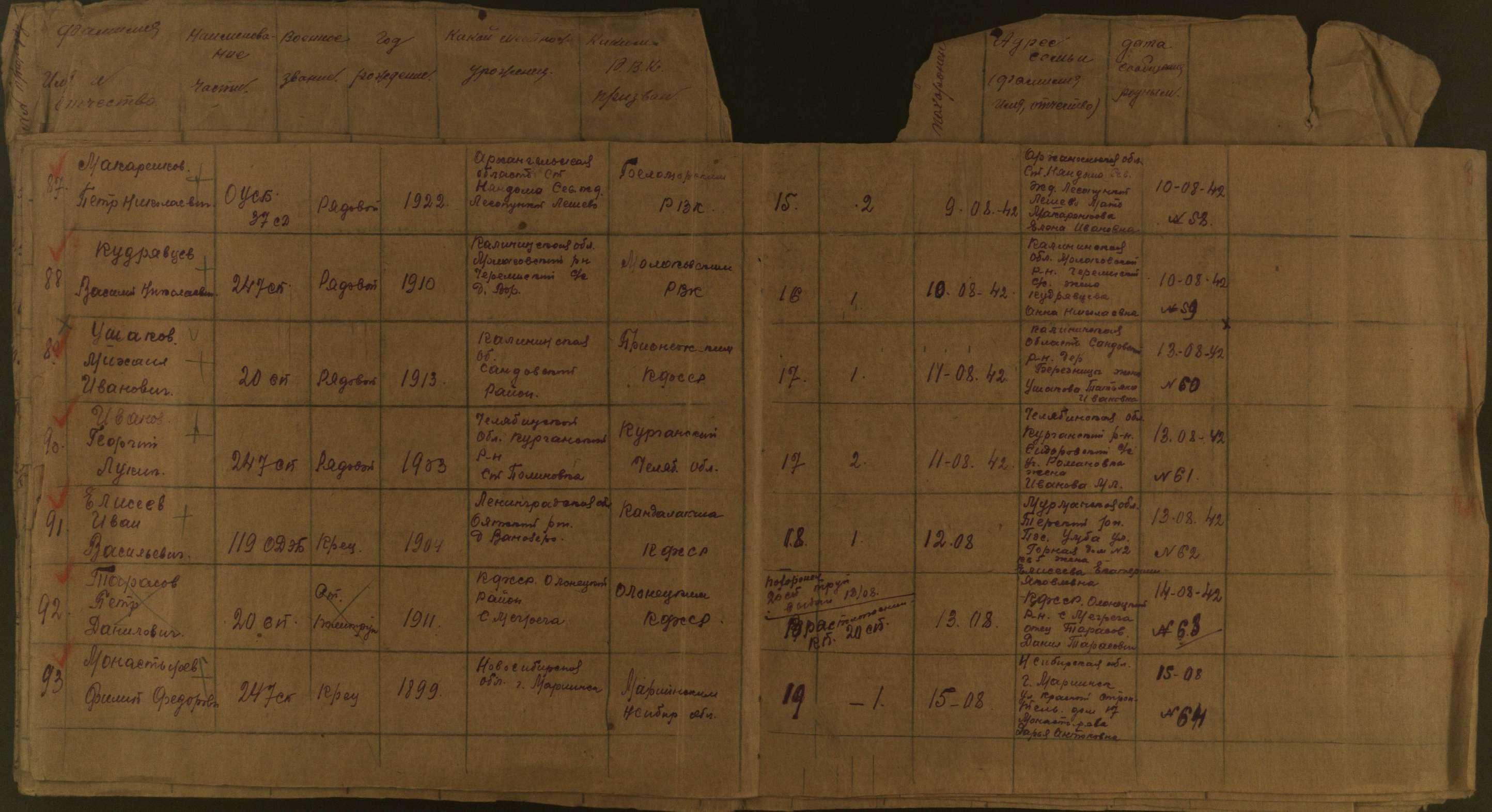книга погребения. 06.03.1942-08.05.1943. Источник: 39 ОМСБ 37 сд. Страница 11 Перейти к списку