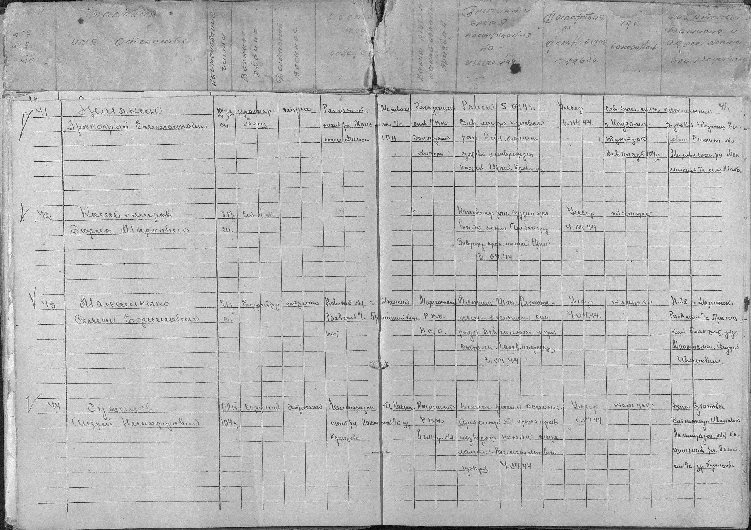 книга погребения. 01.02.1942-23.06.1945. Источник: ХППГ 725. Страница 41 Перейти к списку