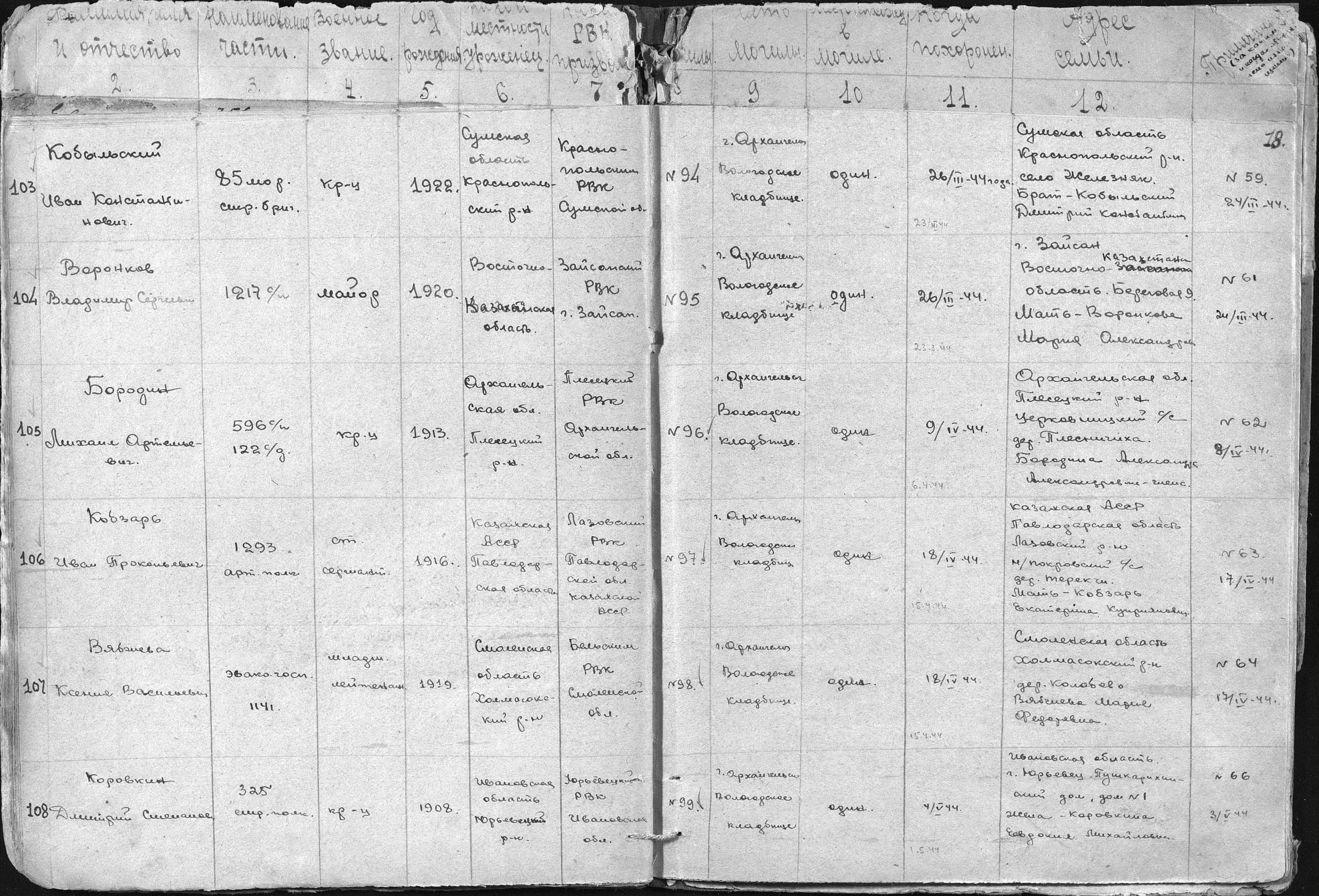 книга погребения. 09.06.1942-29.10.1944. Источник: 352 МСБ 104 сд. Страница 45 Перейти к списку