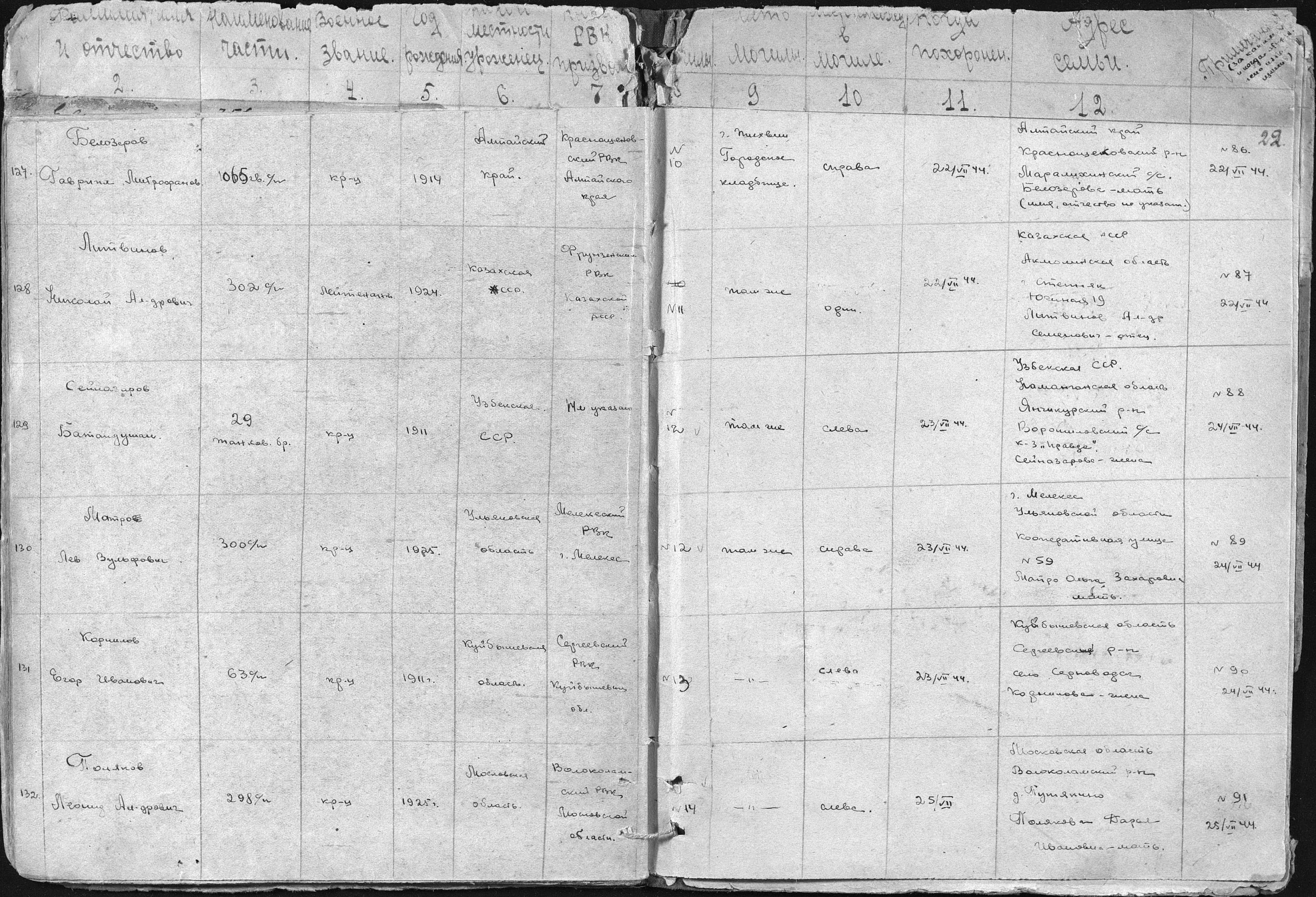 книга погребения. 01.09.1943-26.07.1944. Источник: 637 ППГ. Страница 7 Перейти к списку