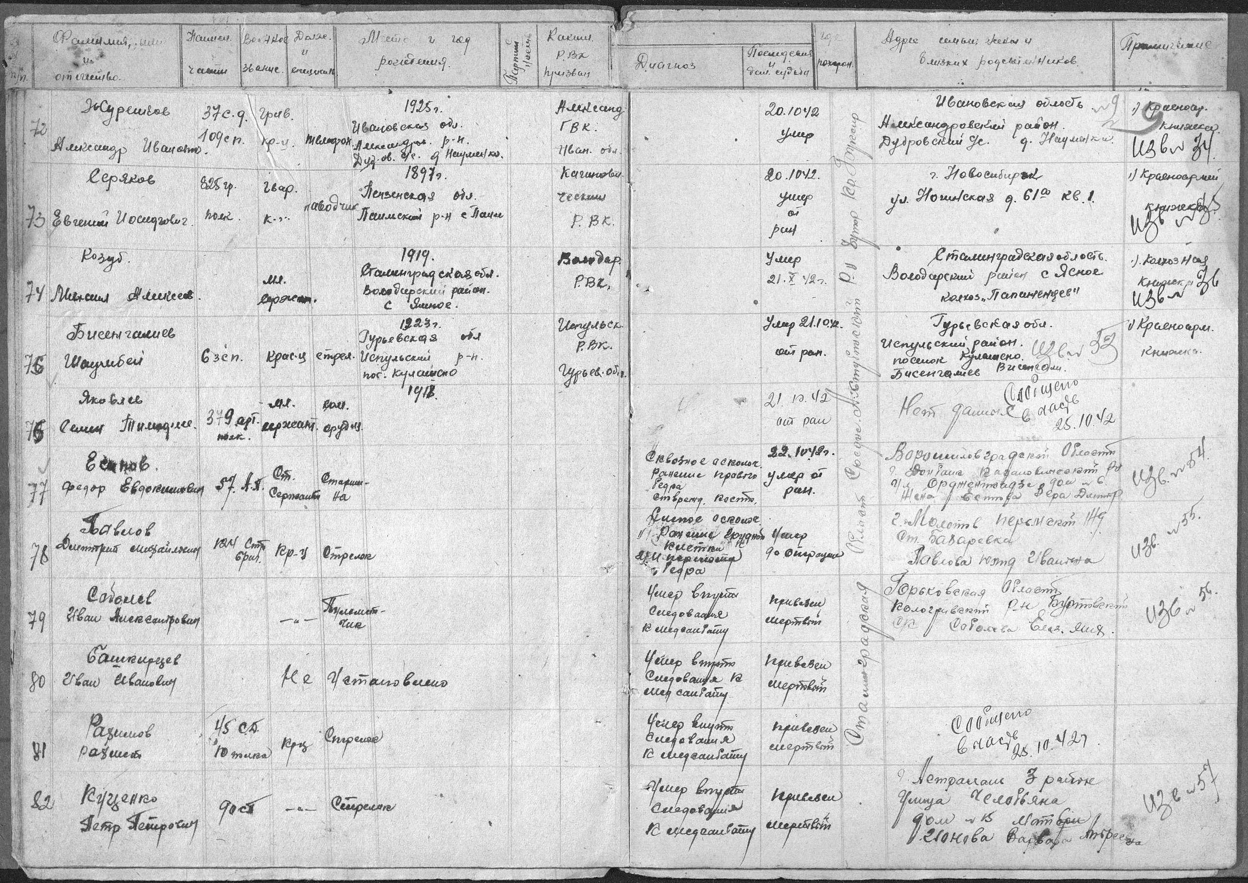 книга погребения. 20.09.1942-24.12.1942. Источник: 585 ОМСБ 75 гв. сд. Страница 12 Перейти к списку