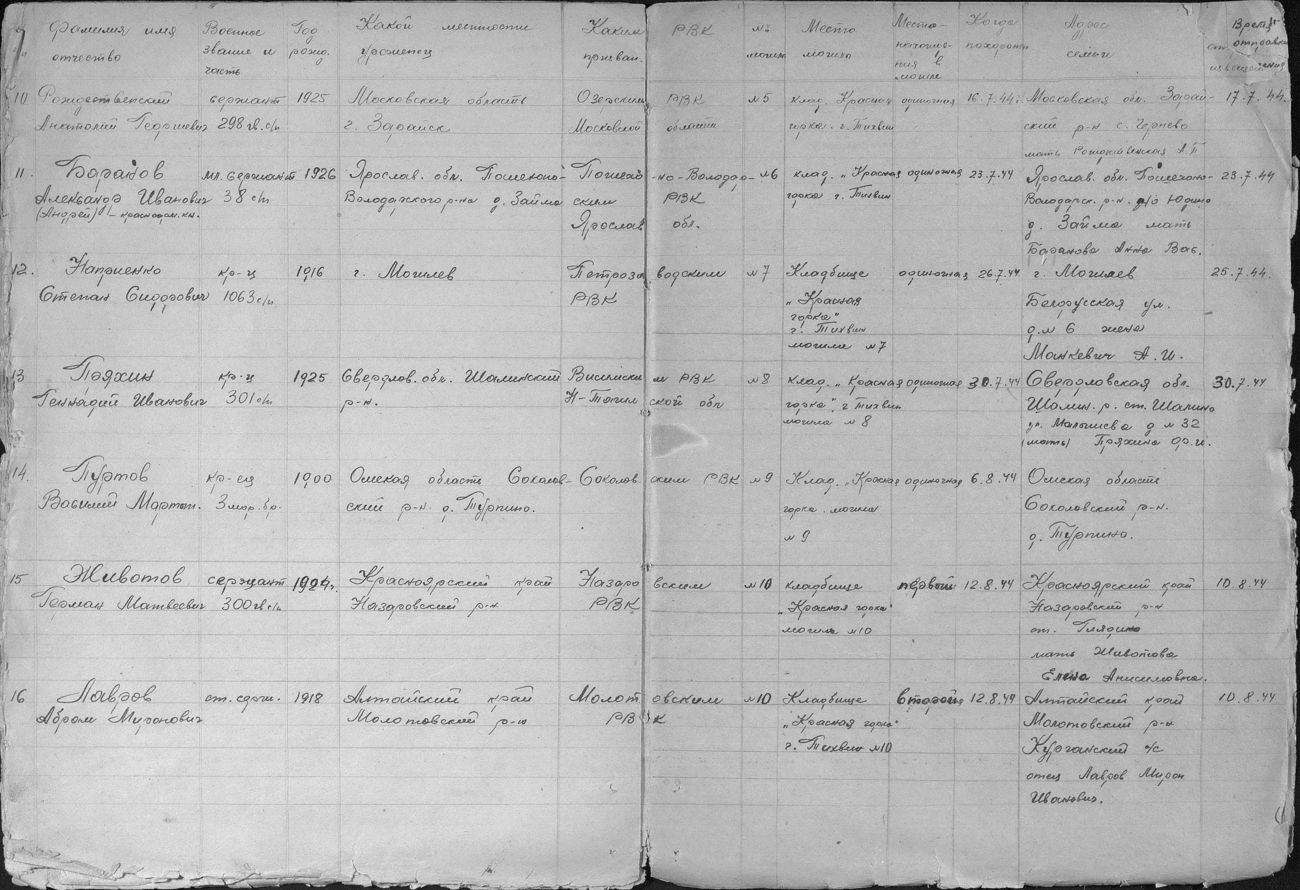 книга погребения. 19.03.1943-30.12.1943. Источник: 3533 ППГ. Страница 9 Перейти к списку