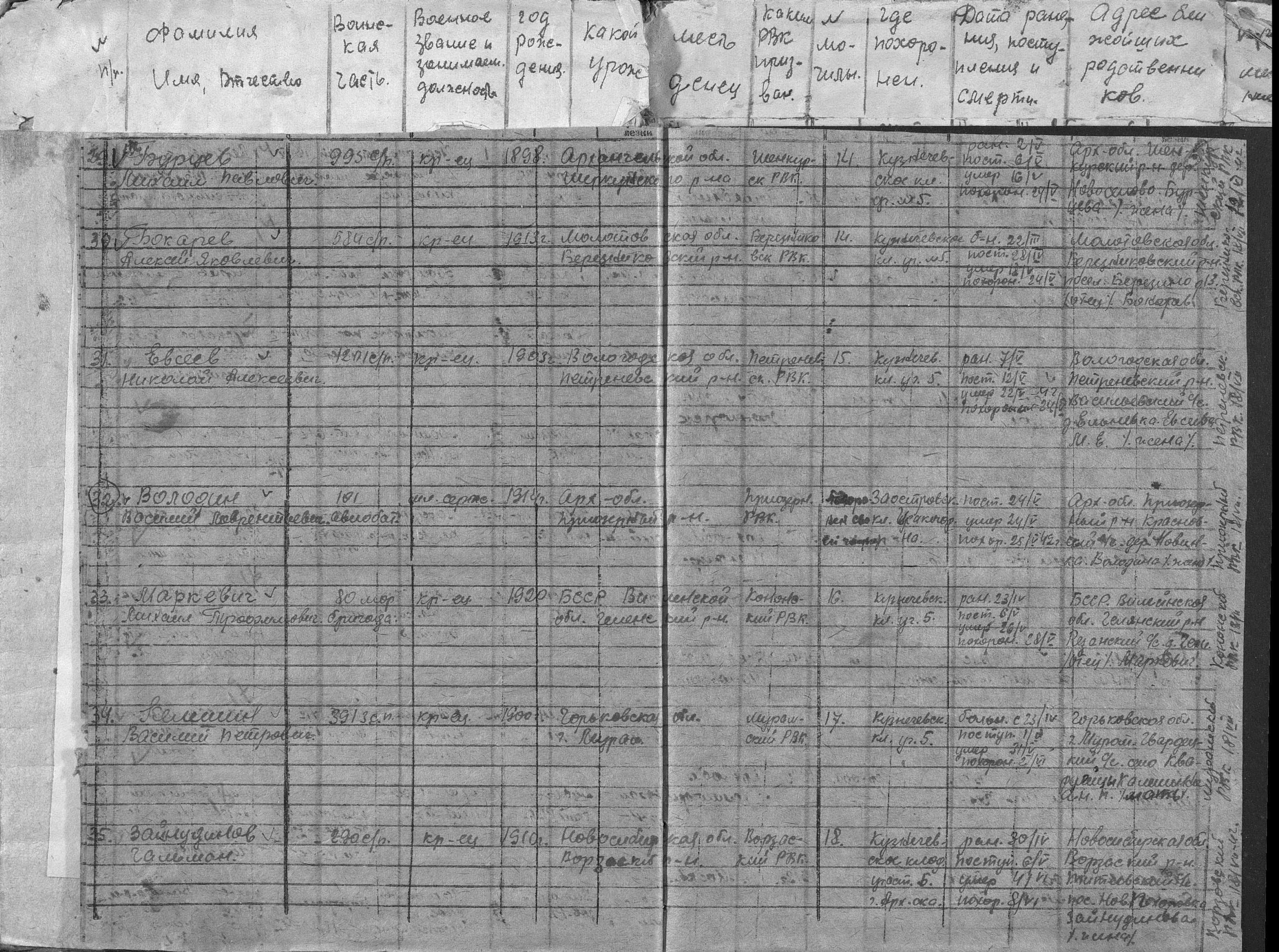 книга погребения. 21.03.1943-28.03.1944. Источник: 225 ОМСБ 131 сд. Страница 33 Перейти к списку