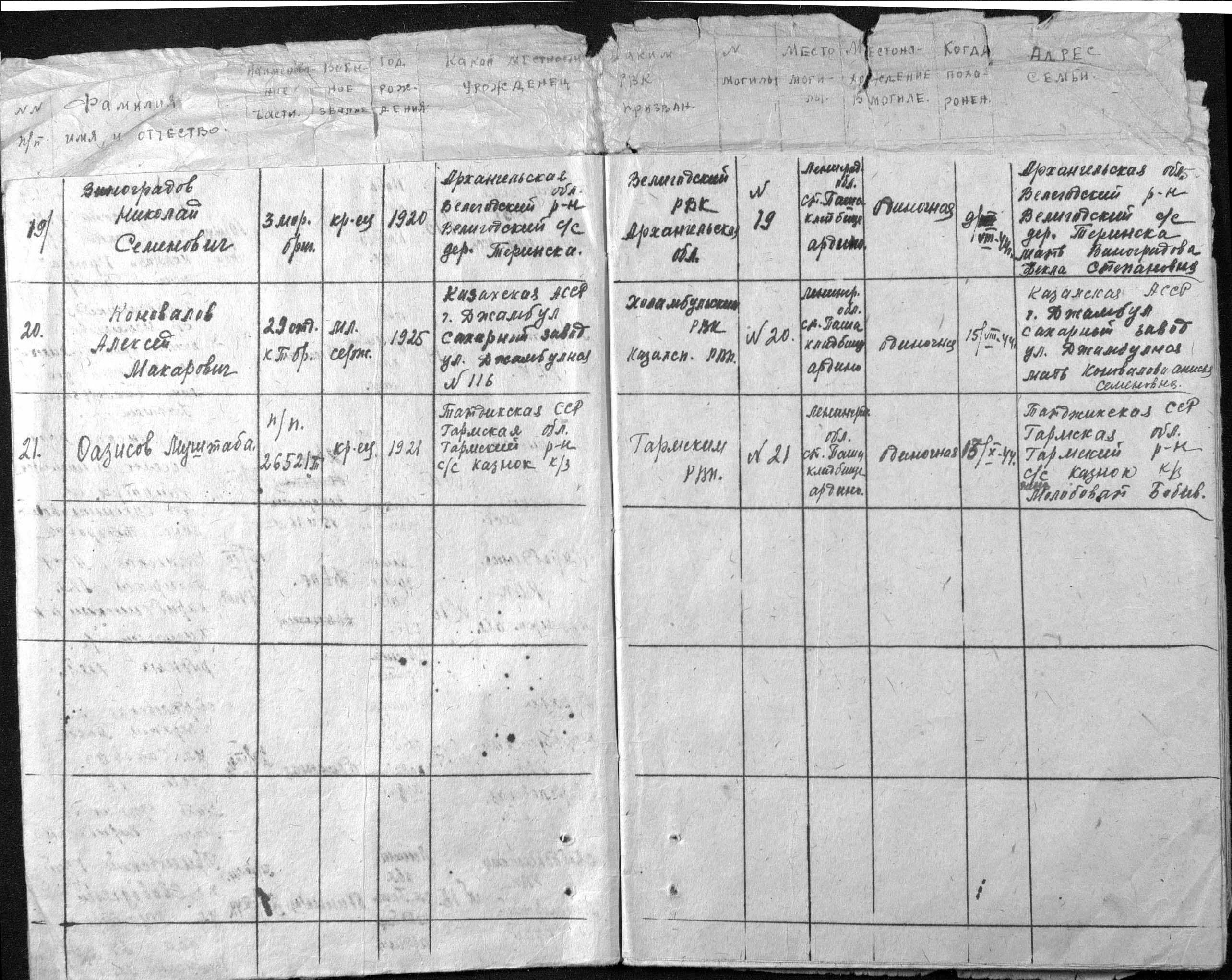 книга погребения. 21.03.1943-28.03.1944. Источник: 225 ОМСБ 131 сд. Страница 32 Перейти к списку