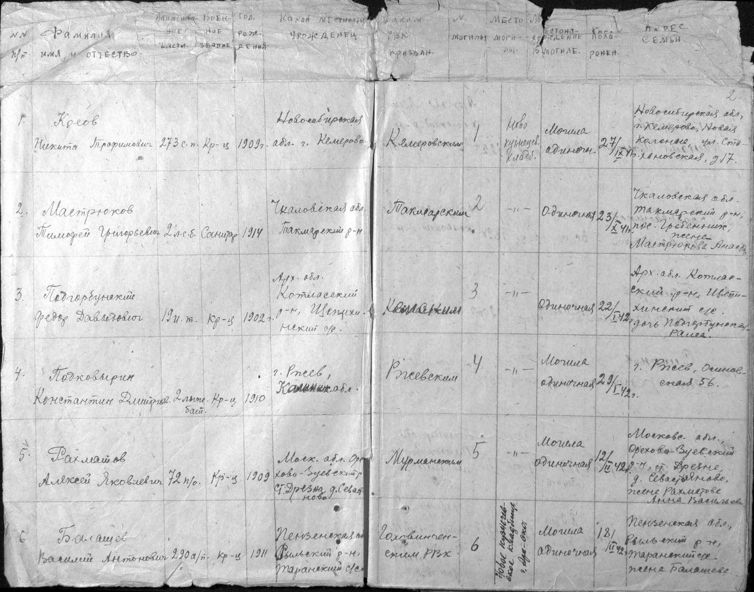книга погребения. 27.09.1941-28.01.1945. Источник: 2533 ЭГ. Страница 6 Перейти к списку