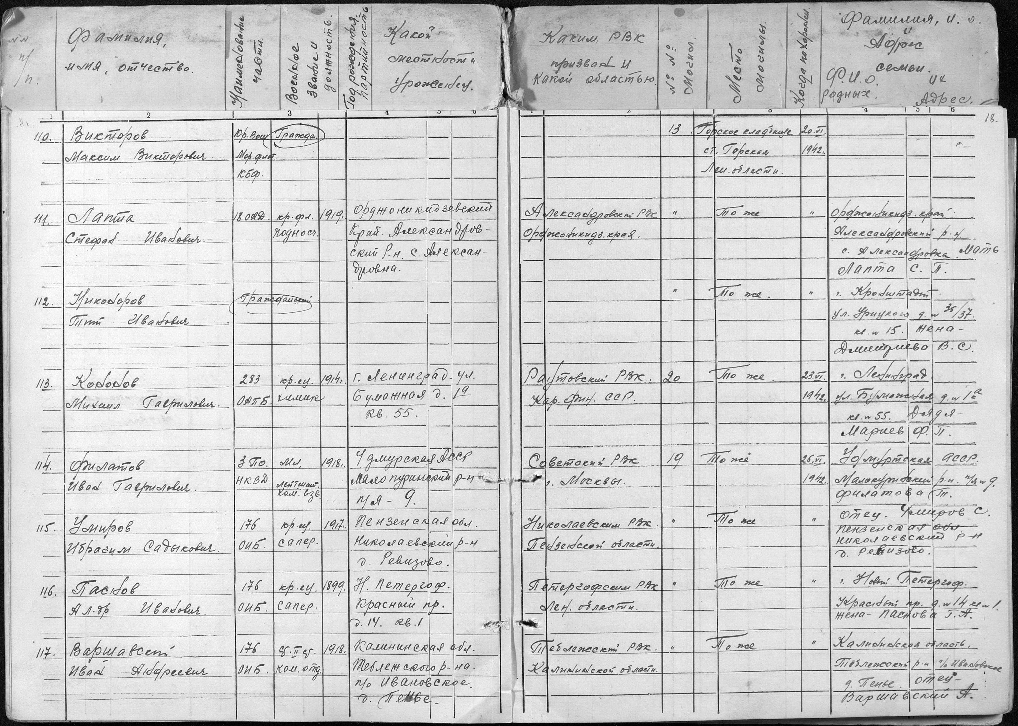 книга погребения. Страница 18 Перейти к списку