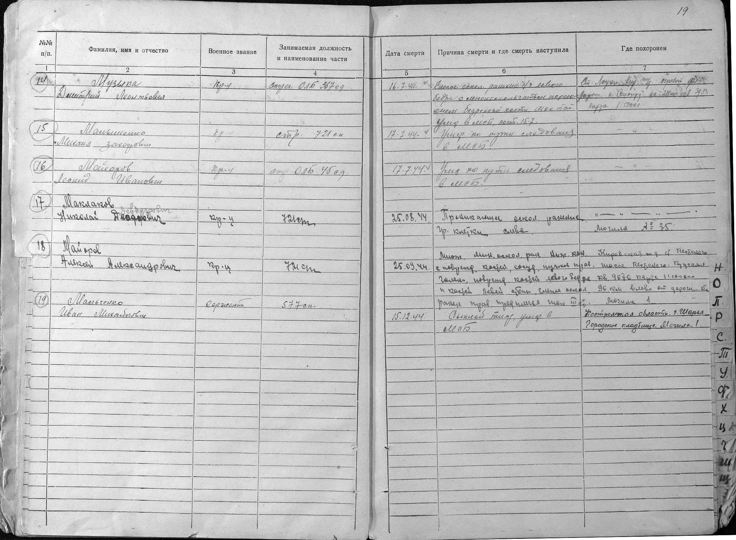 книга погребения. Страница 19 Перейти к списку