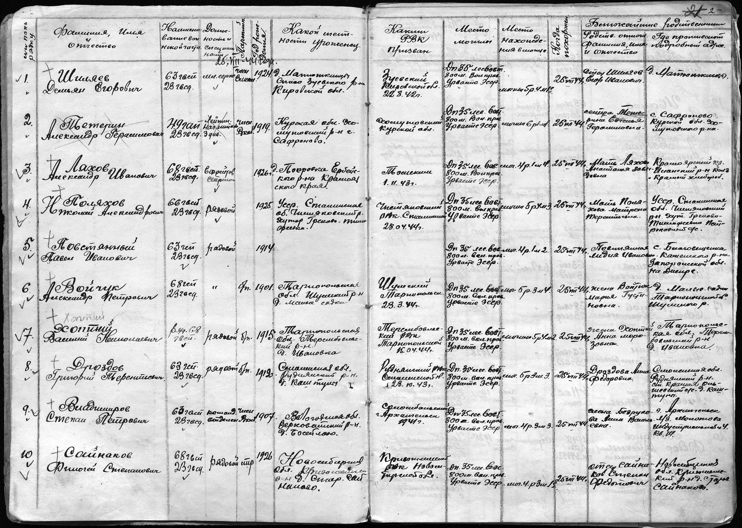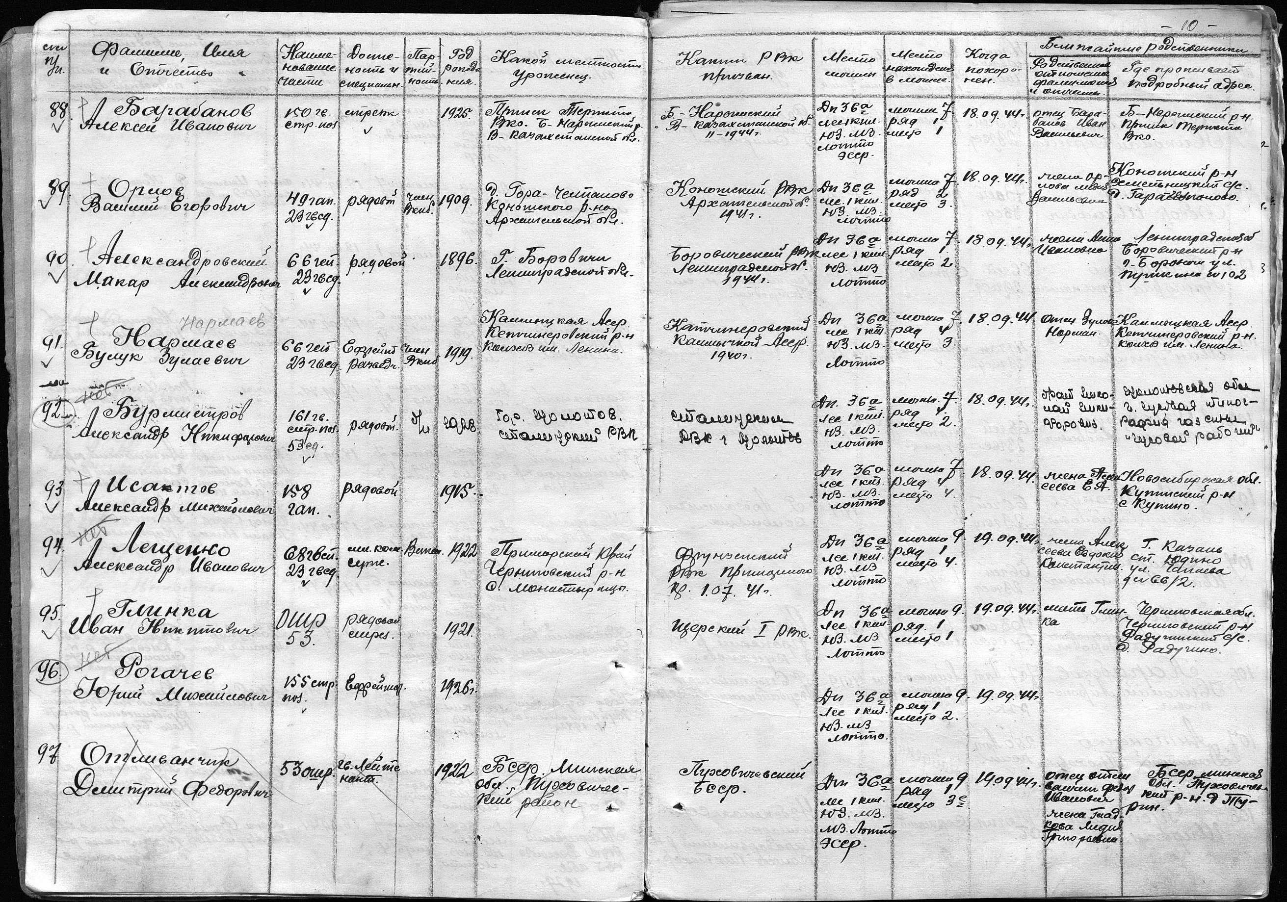 книга учета умерших. 25.08.1944-03.07.1945. Источник: 25 ОМСБ 23 гв. сд. Страница 11 Перейти к списку