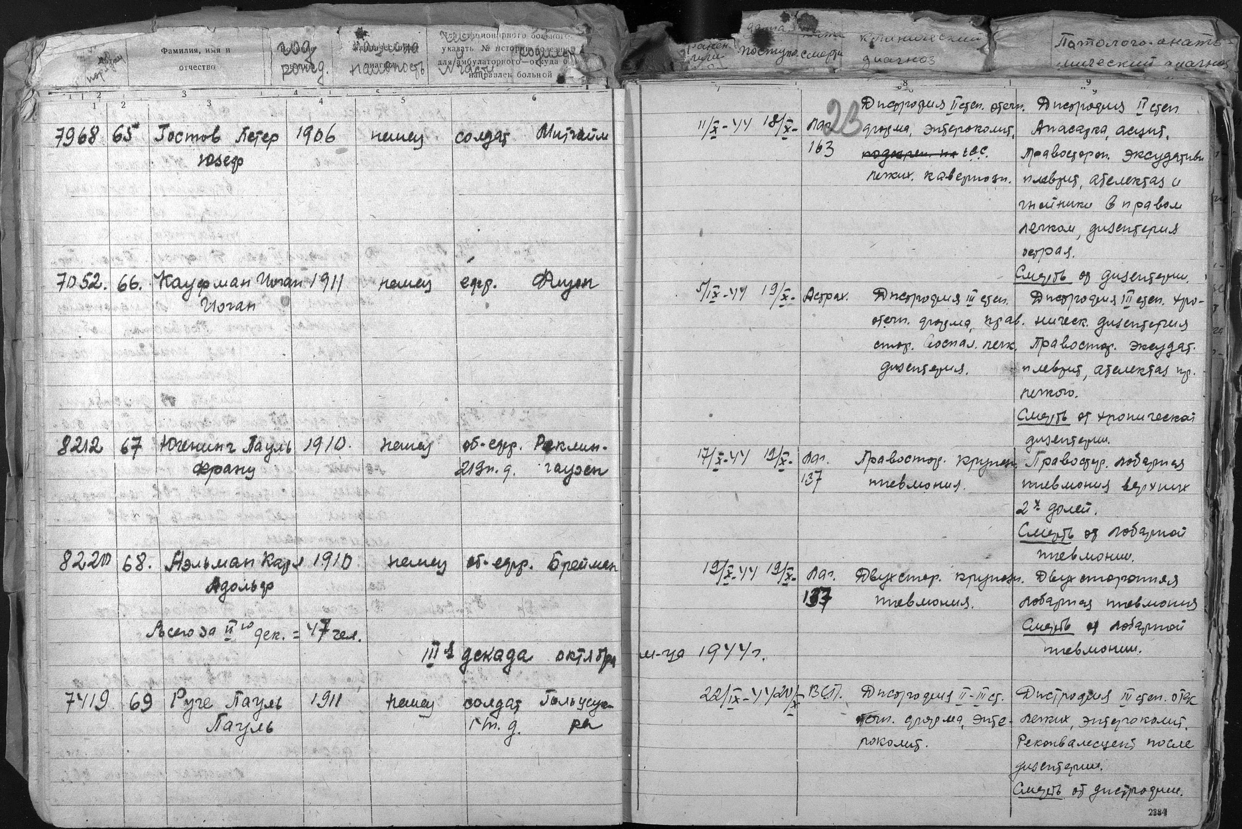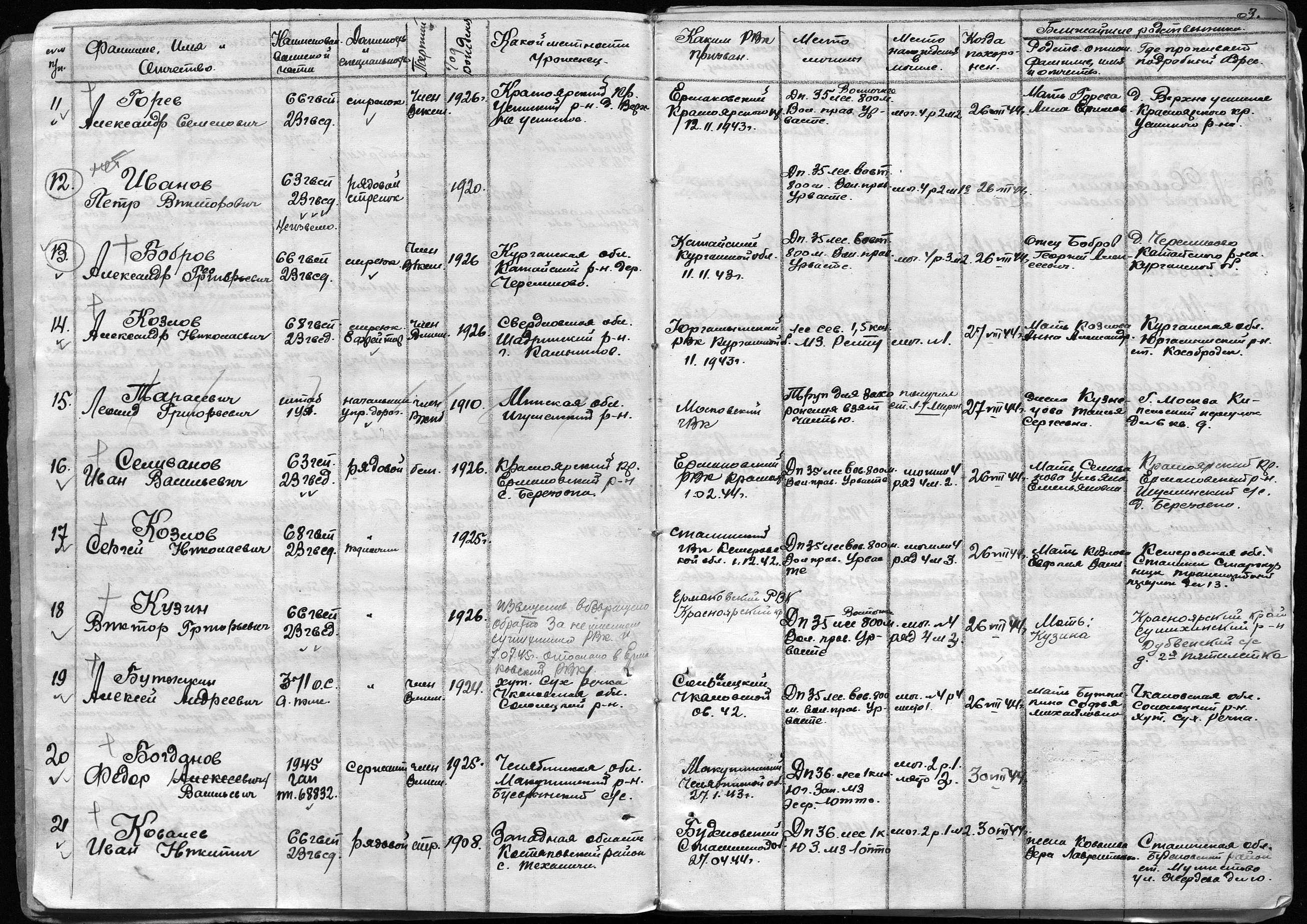 книга учета умерших. 26.02.1943-10.05.1945. Источник: 4536 ПГ. Страница 14 Перейти к списку
