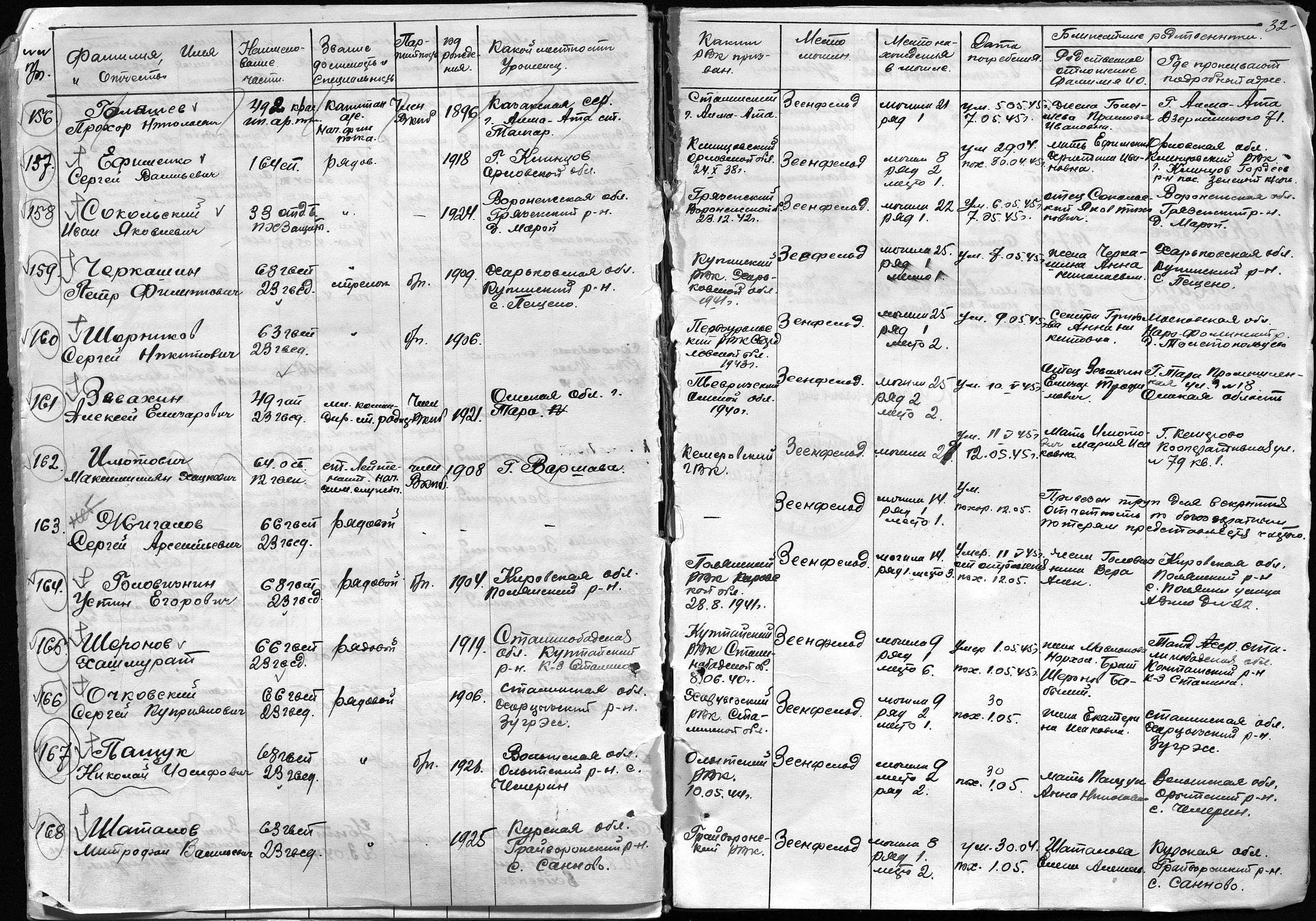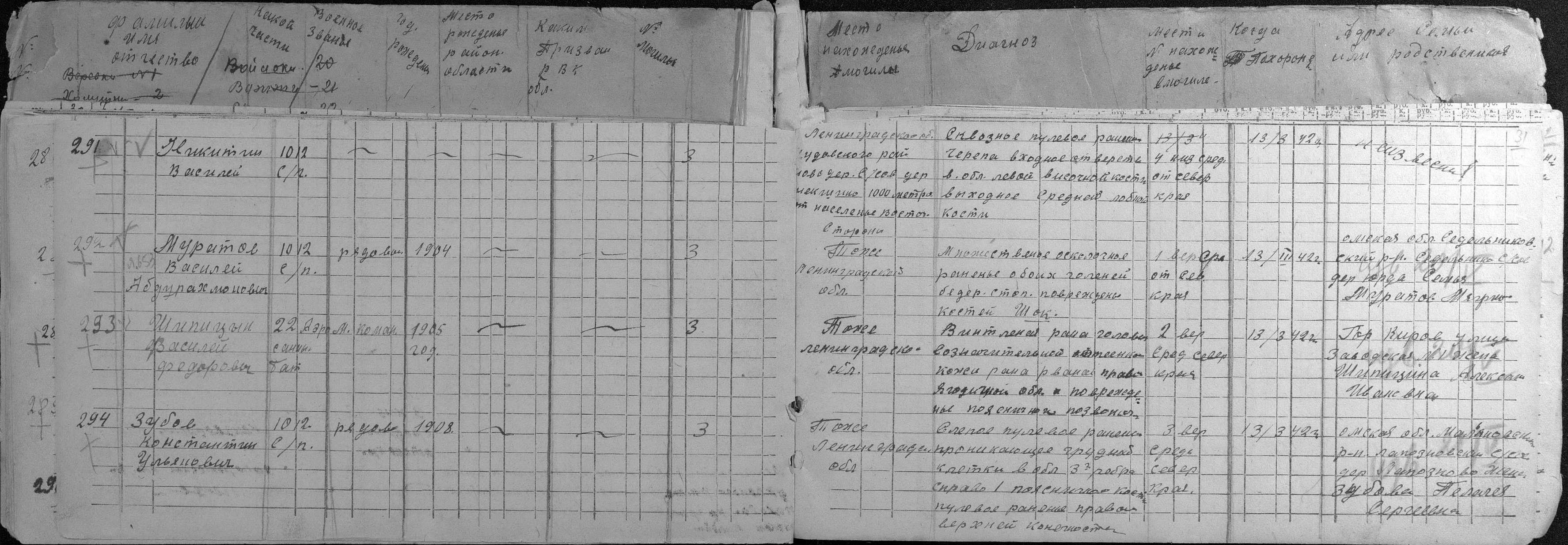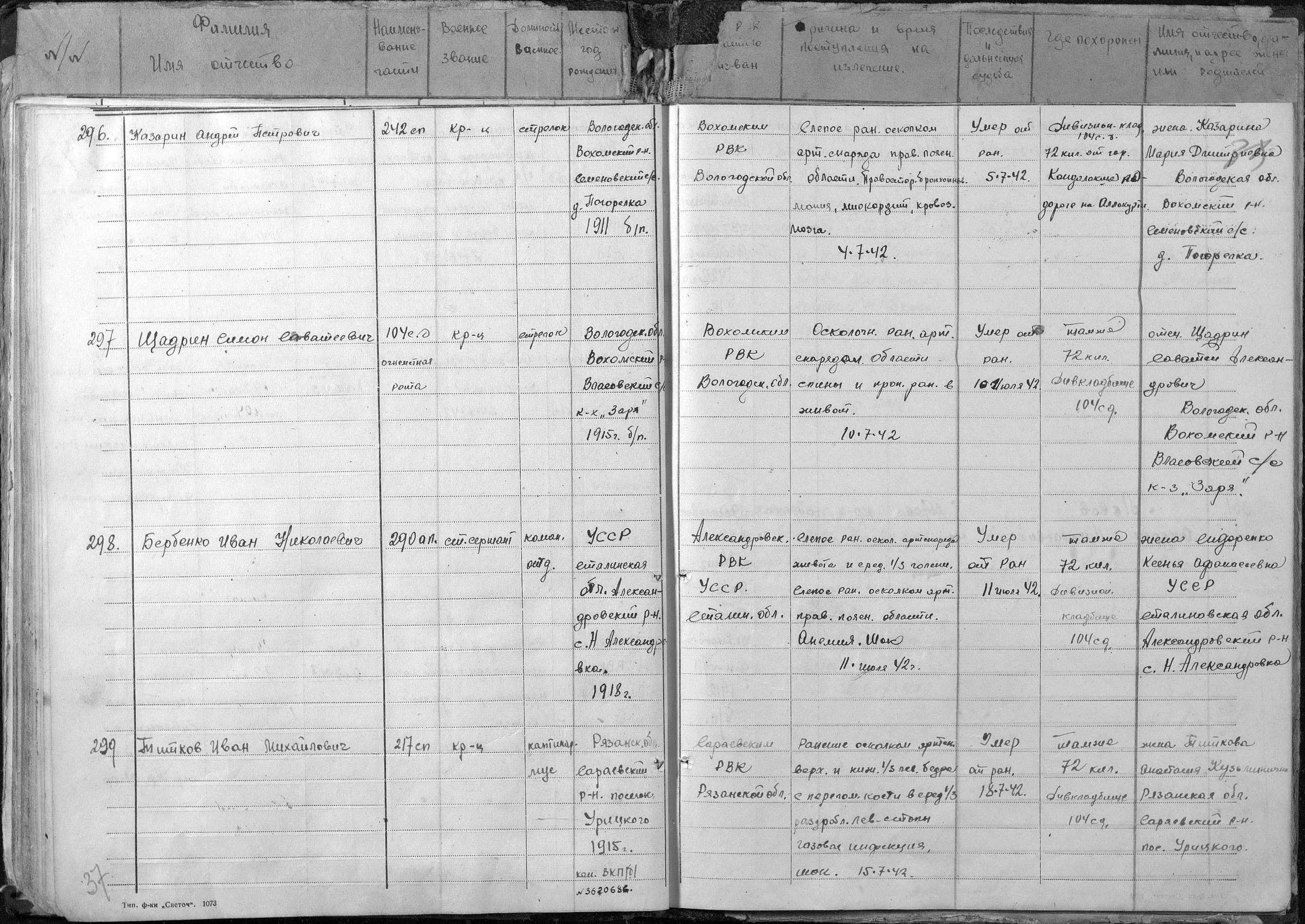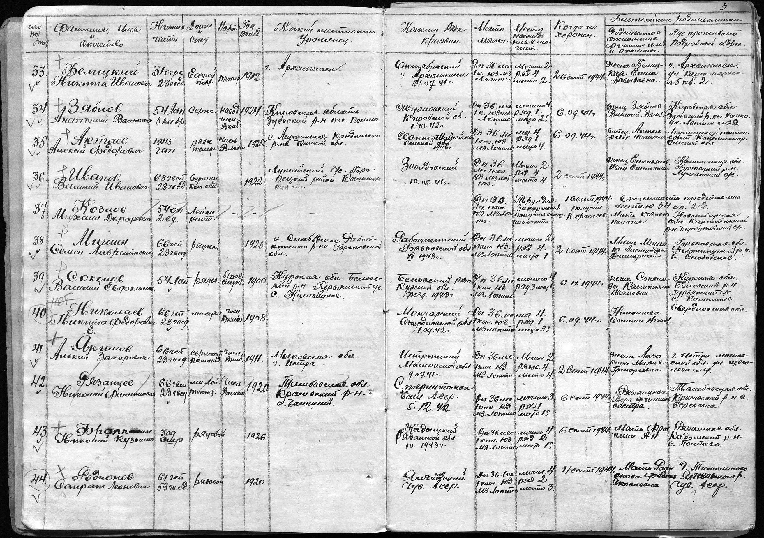 книга учета умерших. 19.01.1942-31.05.1942. Источник: 297 МСБ. Страница 33 Перейти к списку