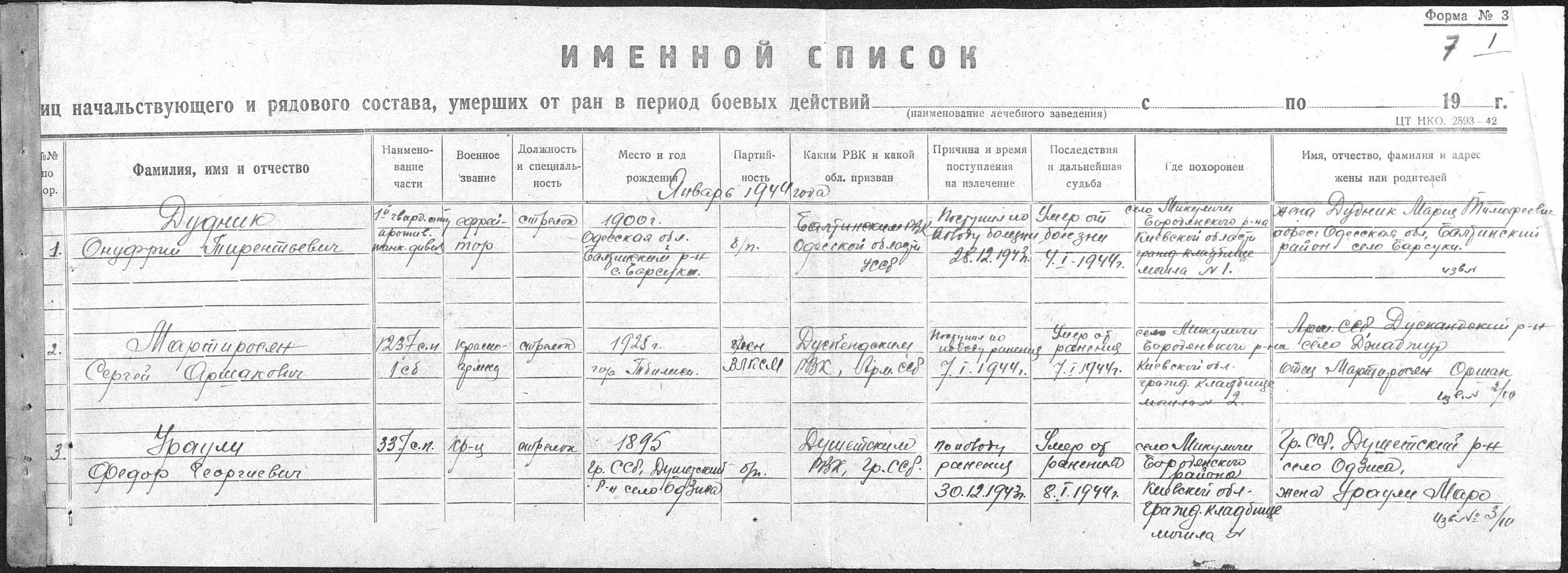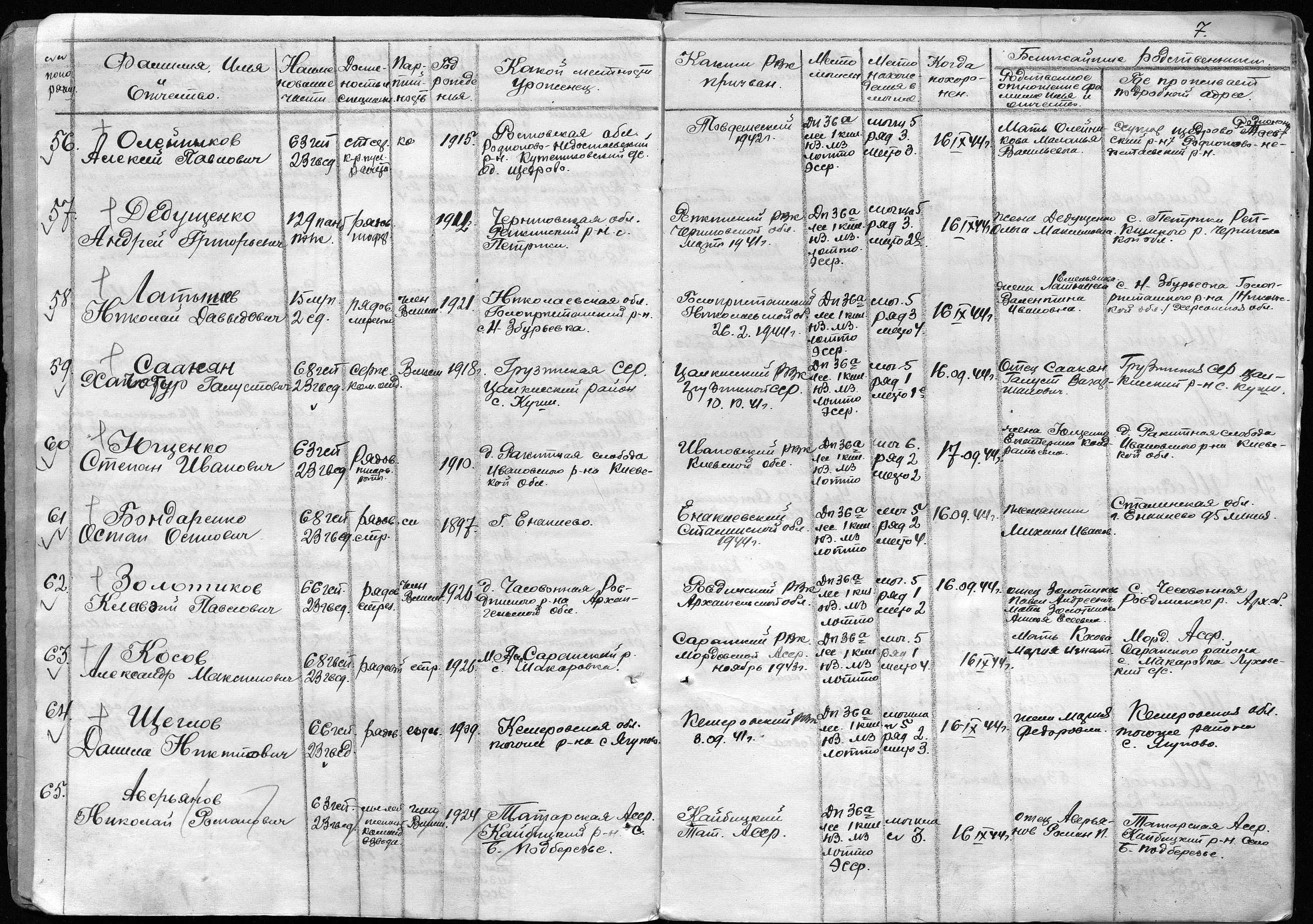 книга учета умерших. 25.08.1944-03.07.1945. Источник: 25 ОМСБ 23 гв. сд. Страница 7 Перейти к списку