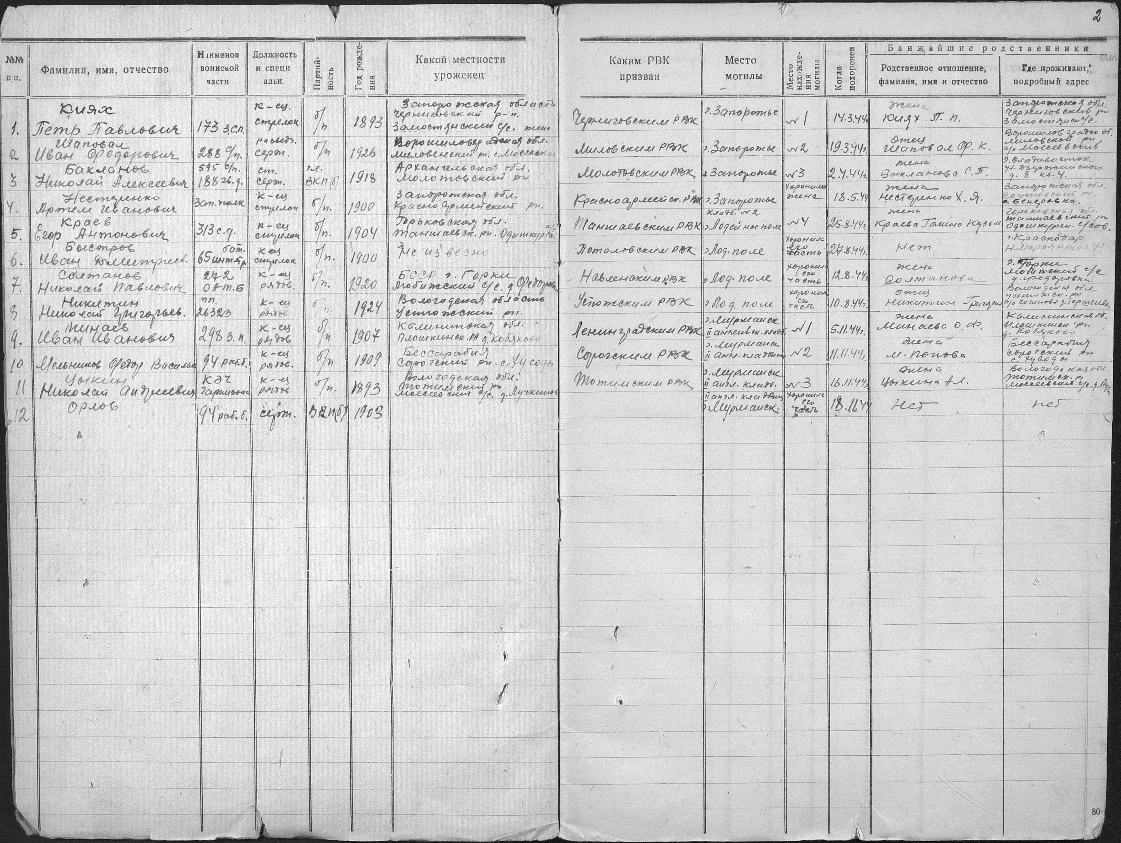 книга учета умерших. 25.08.1944-03.07.1945. Источник: 25 ОМСБ 23 гв. сд. Страница 12 Перейти к списку