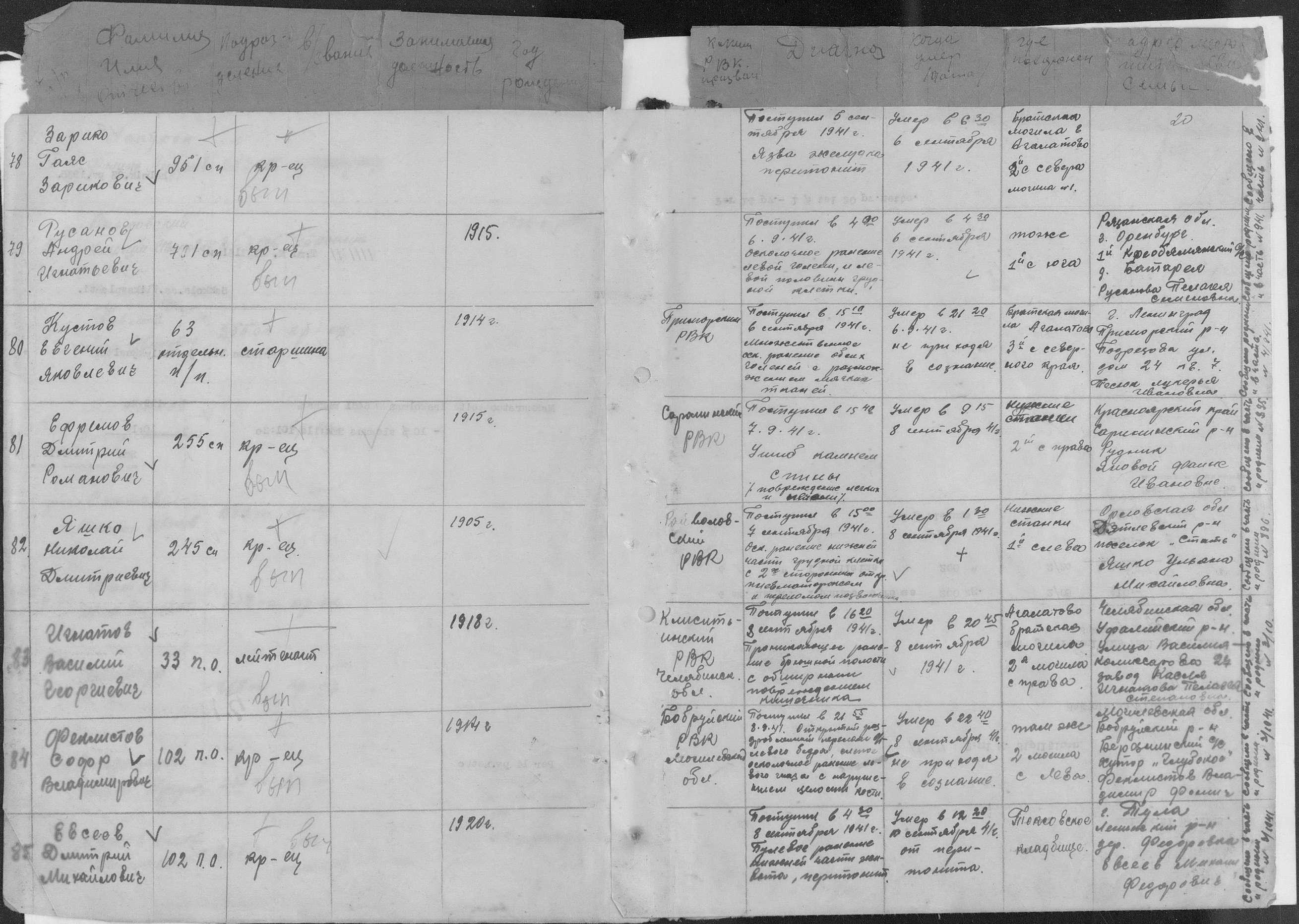 книга учета умерших. 25.08.1941-11.08.1943. Источник: 1710 ЭГ. Страница 19 Перейти к списку