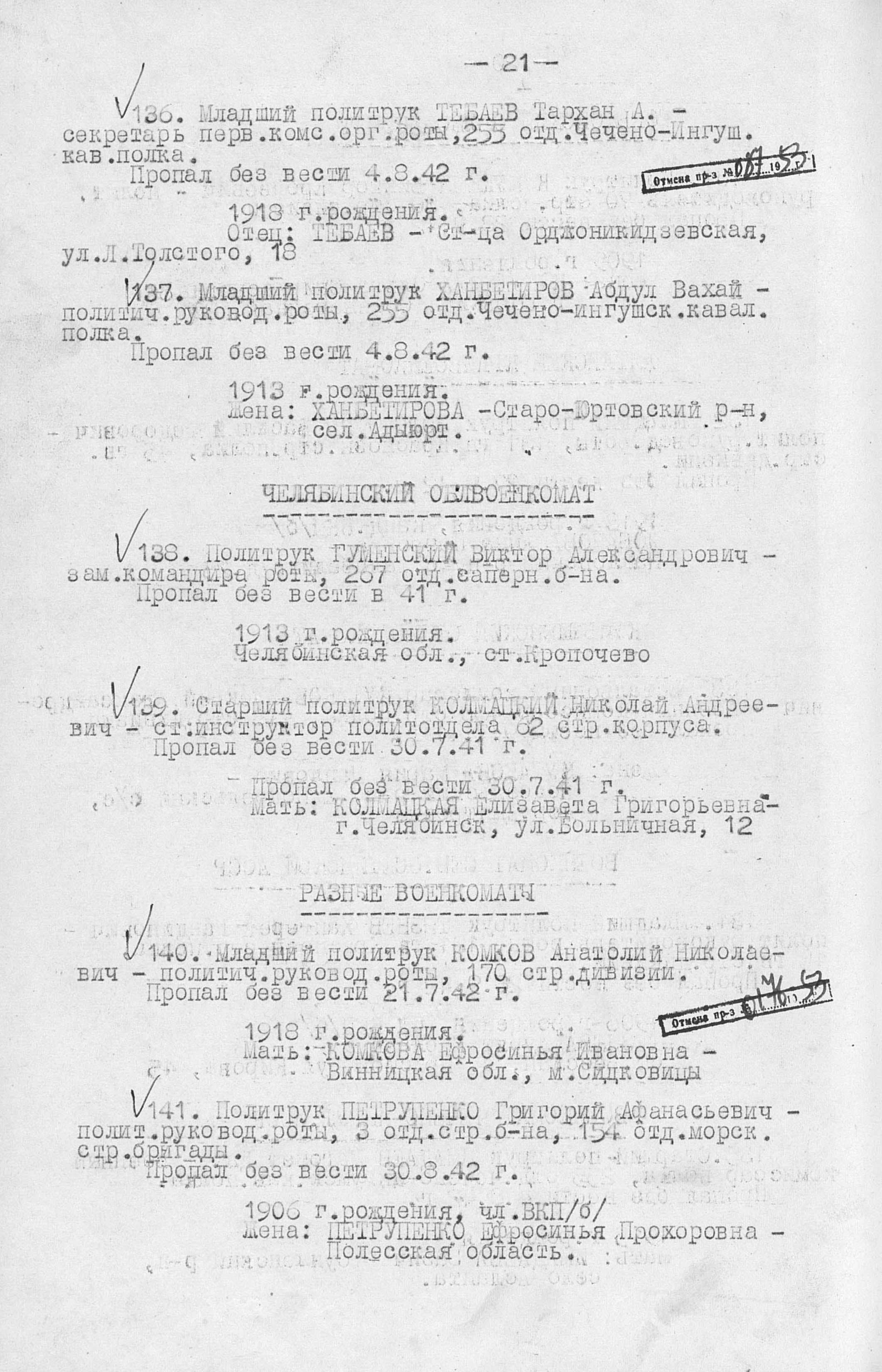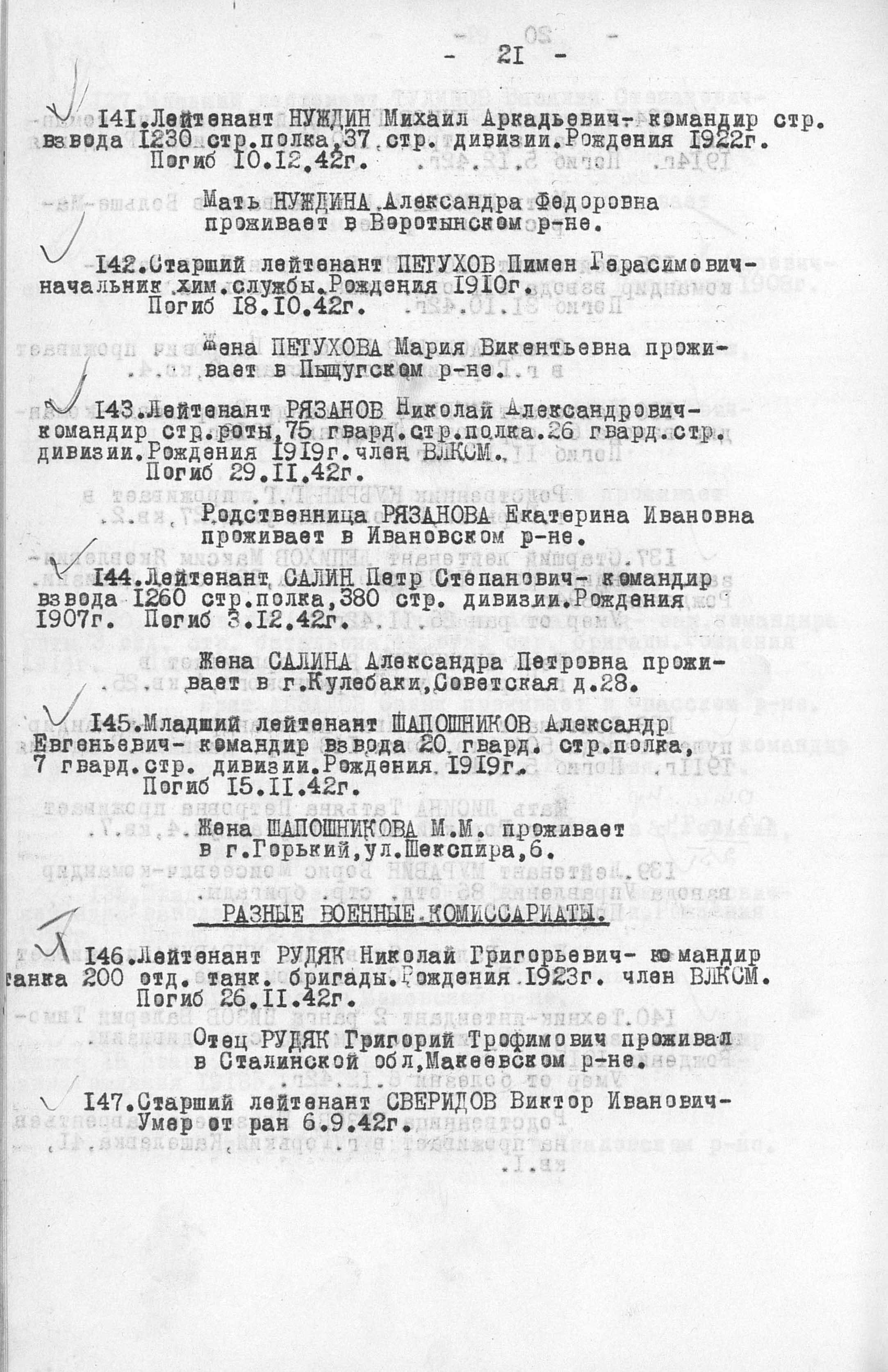 Приказ об исключении из списков. Номер 1282. 15.12.1942. Источник: ГУФ и УВ КА. Страница 21 Перейти к списку