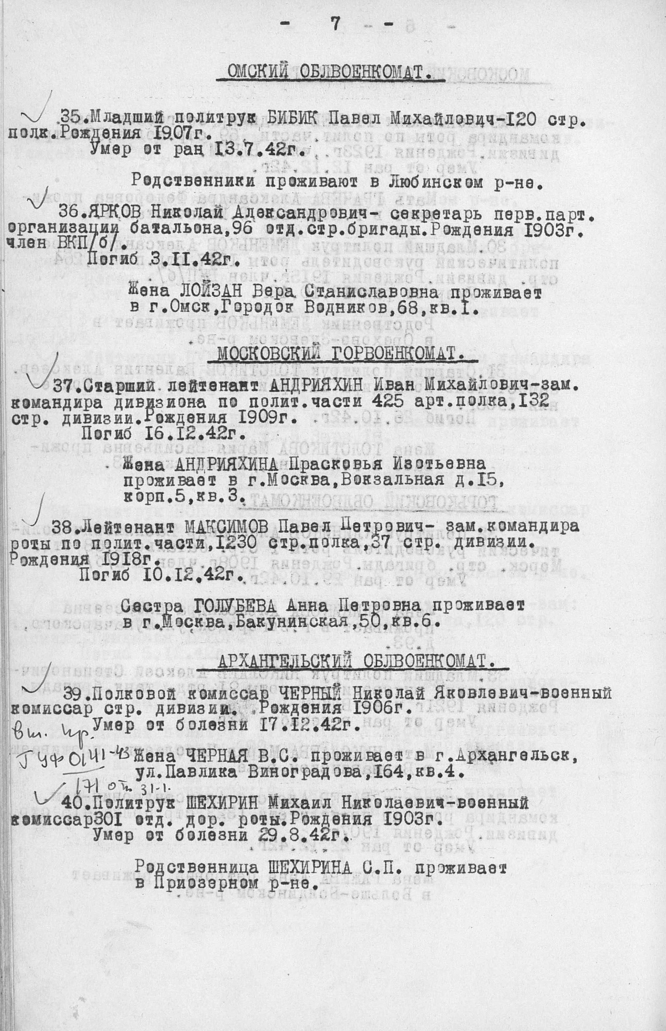 Приказ об исключении из списков. Номер 1277. 15.12.1942. Источник: ГУФ и УВ КА. Страница 5 Перейти к списку