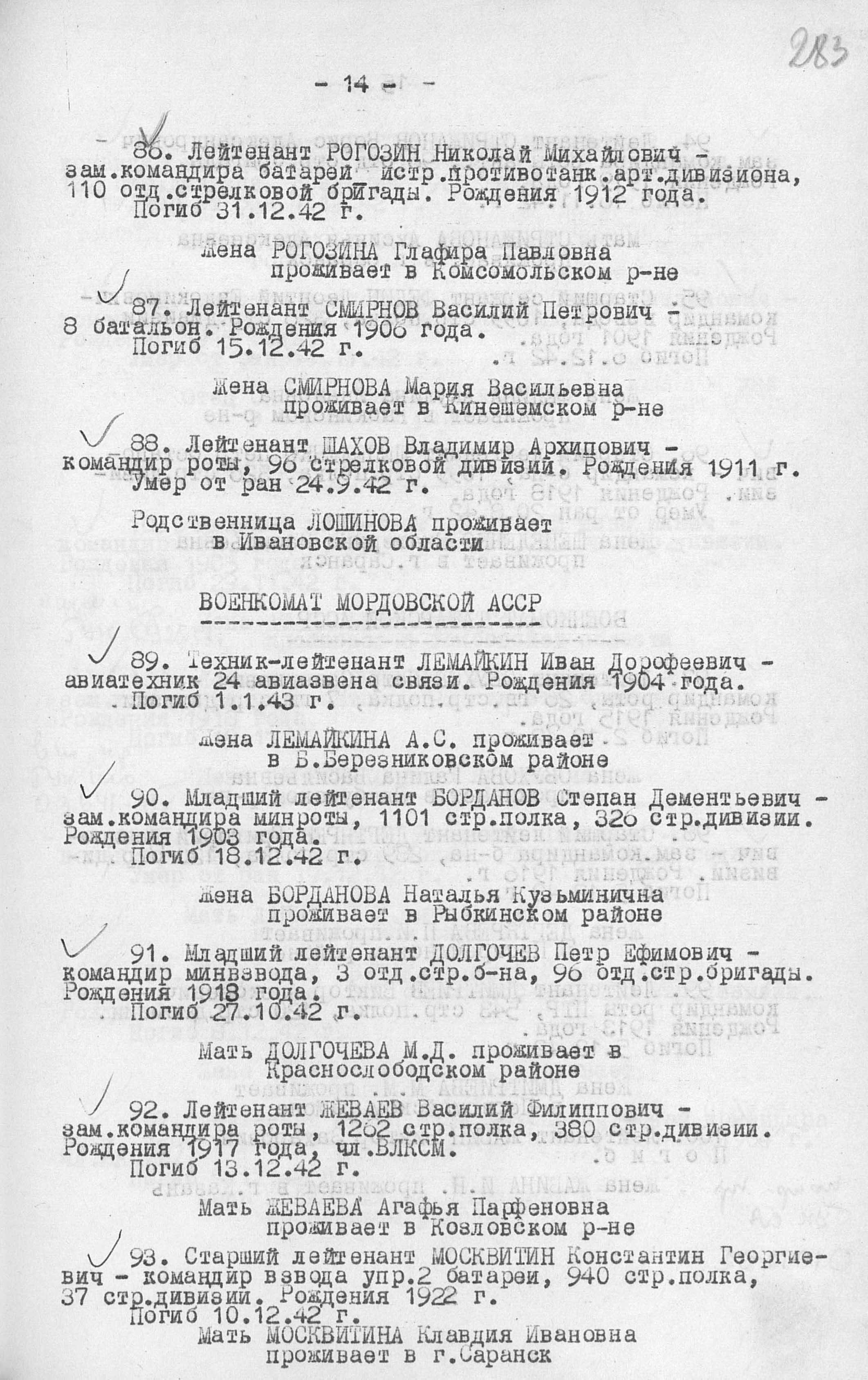 Приказ об исключении из списков. Номер 1282. 15.12.1942. Источник: ГУФ и УВ КА. Страница 29 Перейти к списку
