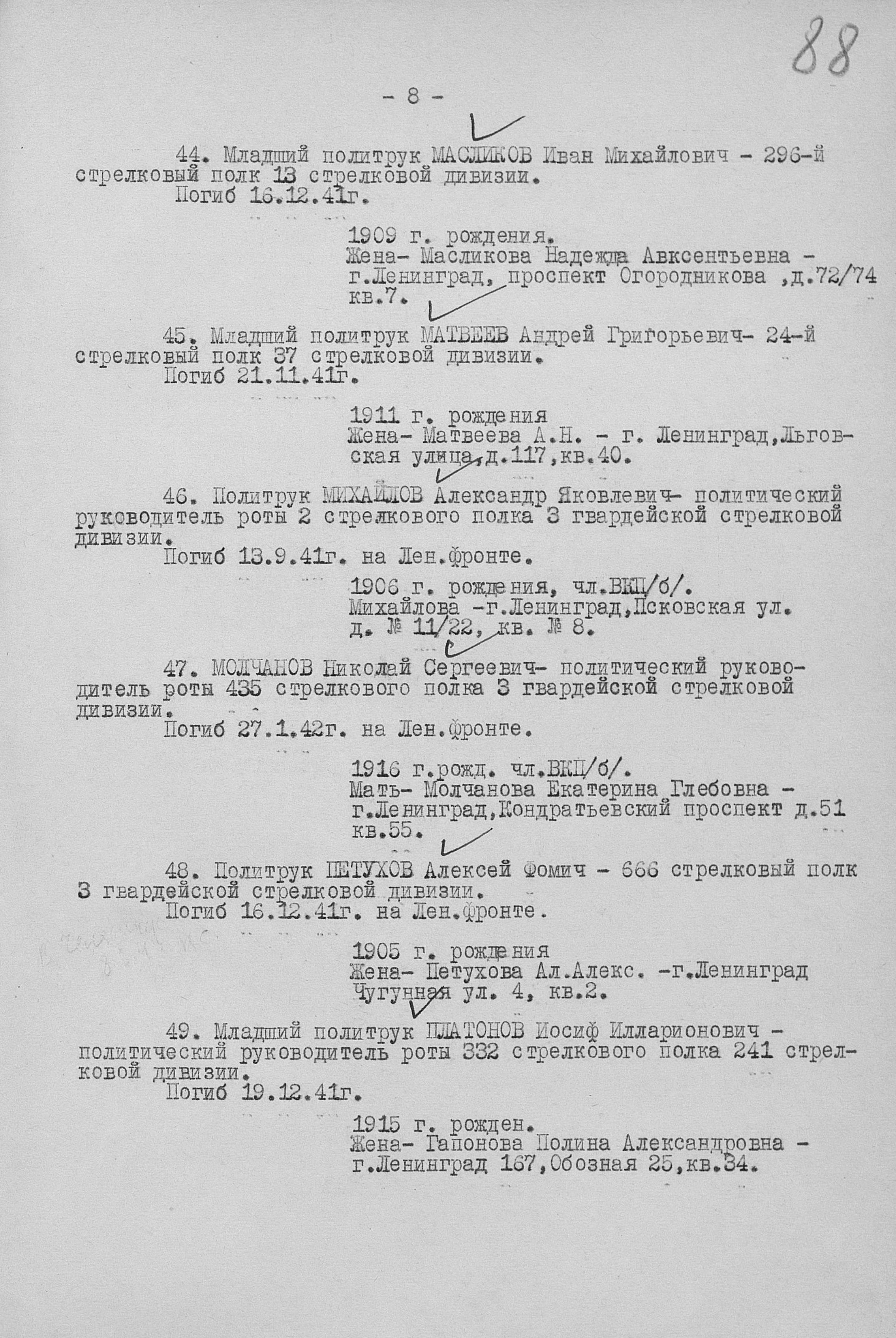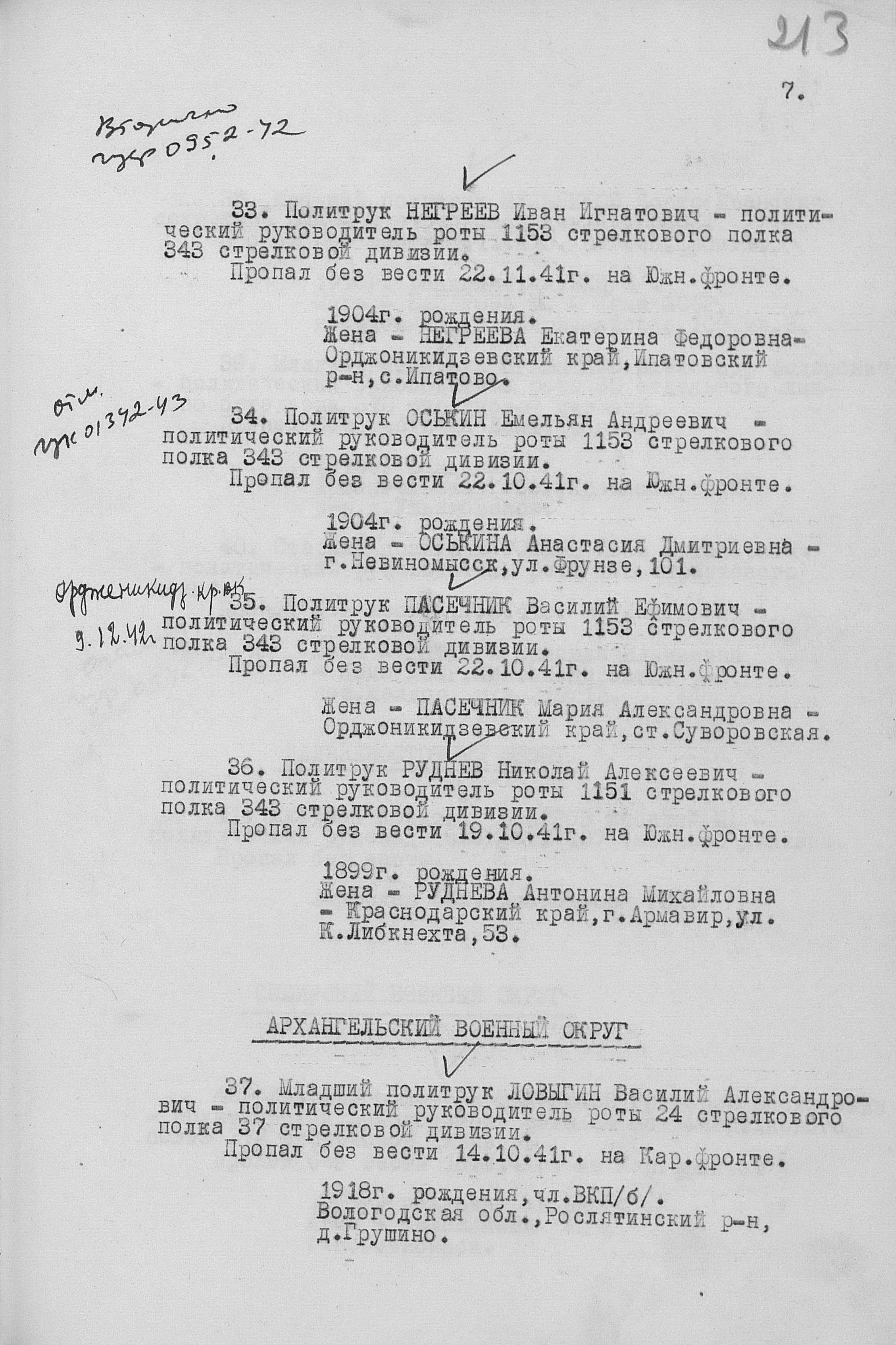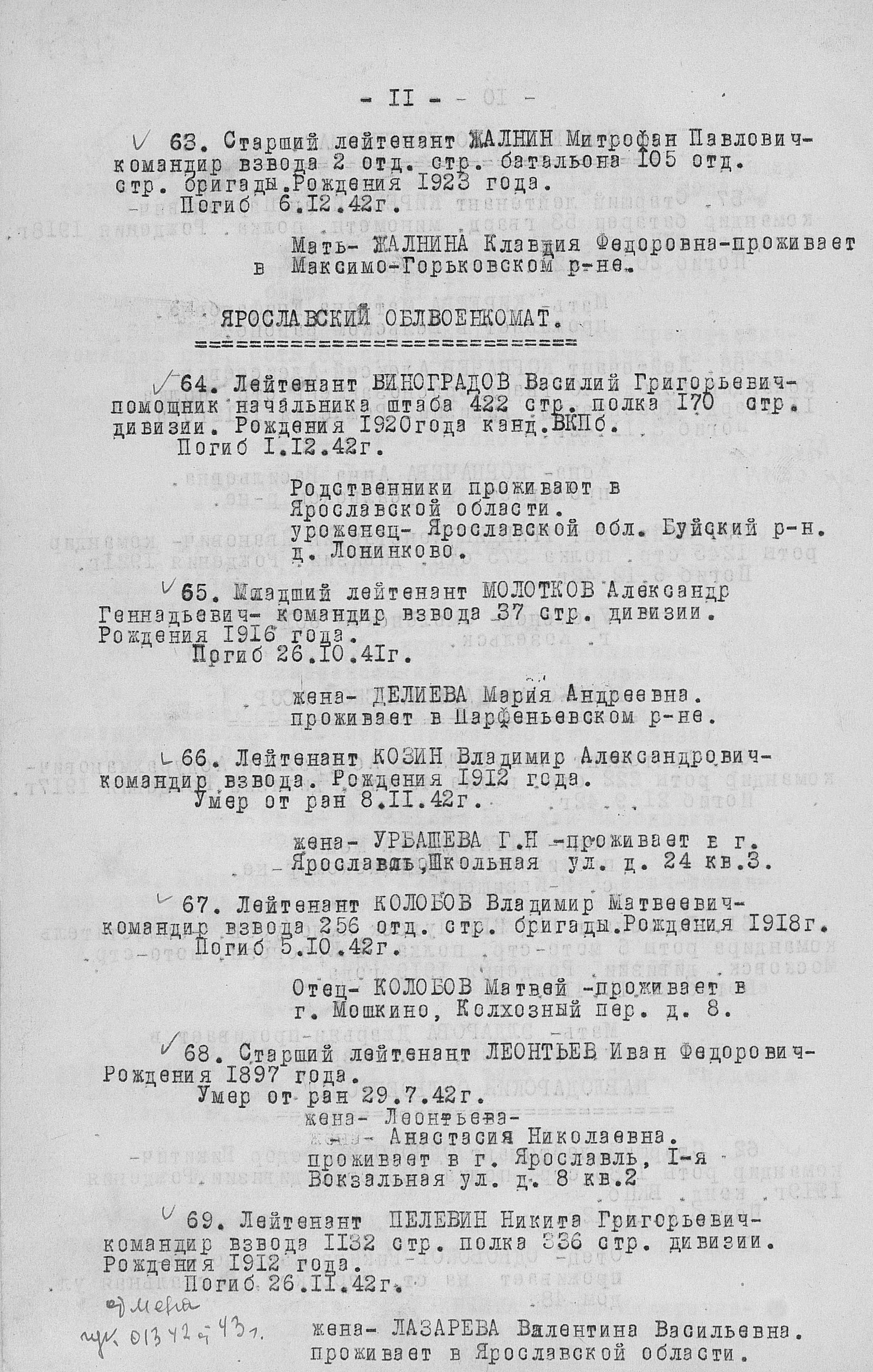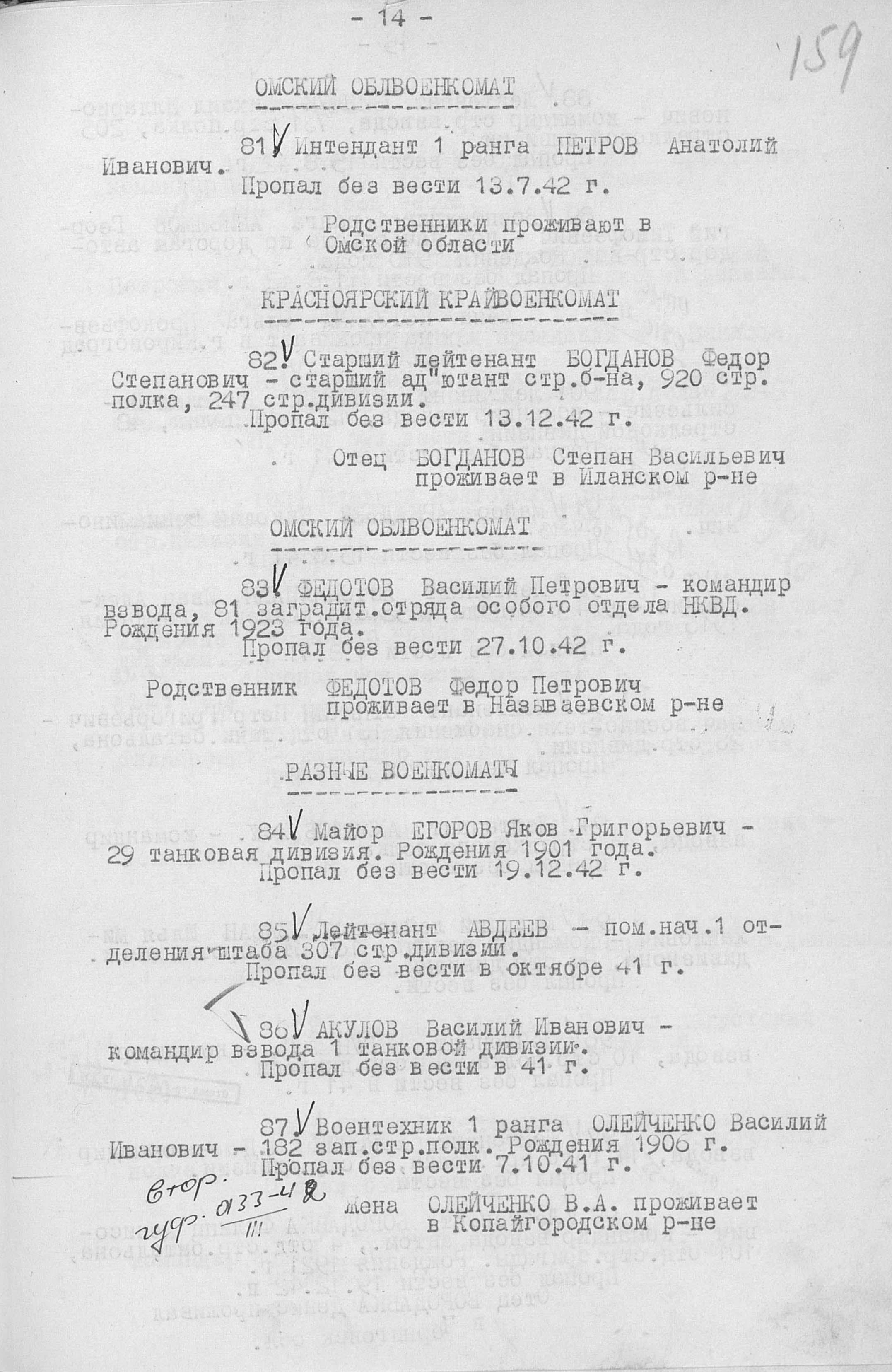 Приказ об исключении из списков. Номер 1385. 31.12.1942. Источник: ГУФ и УВ КА. Страница 13 Перейти к списку