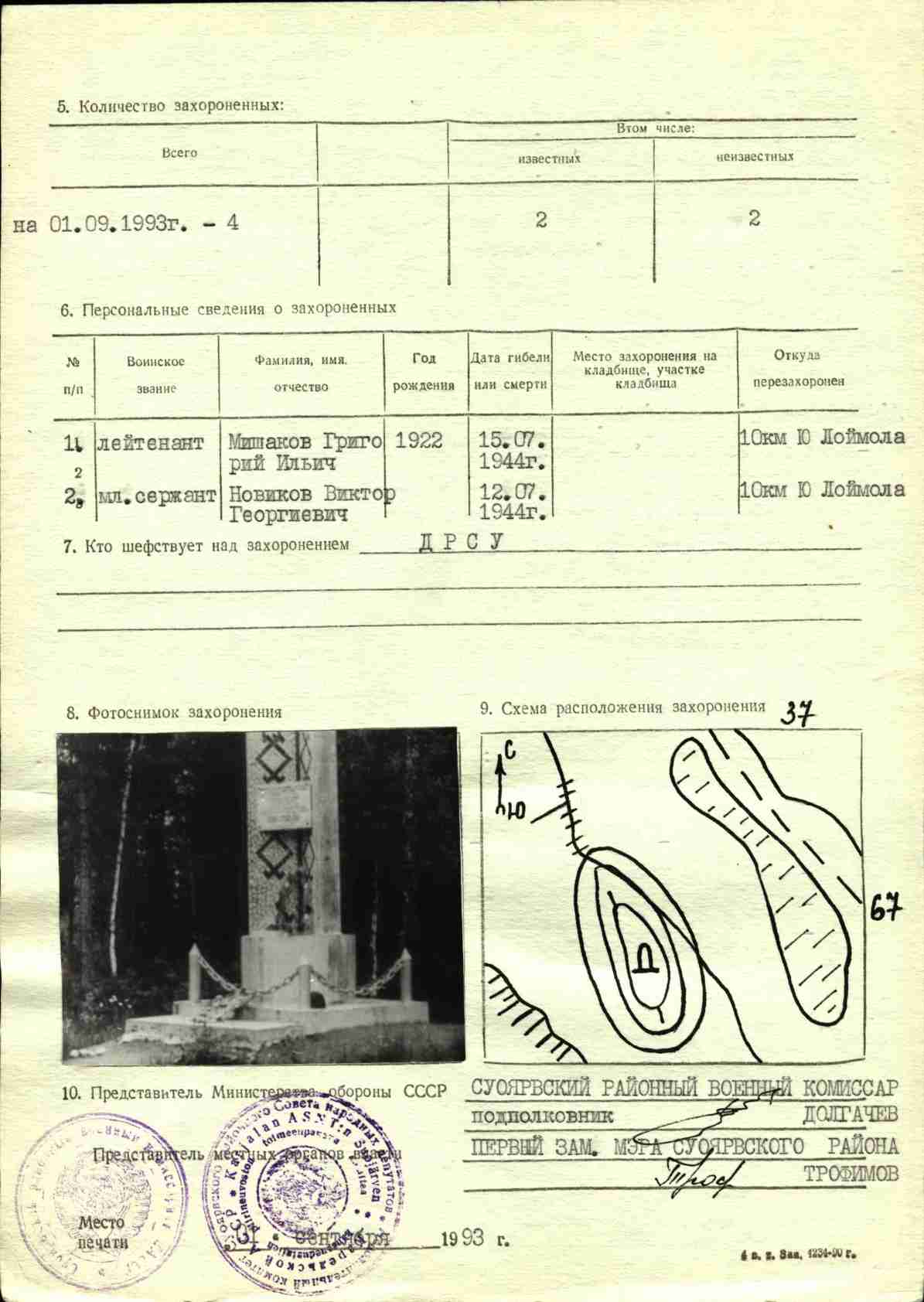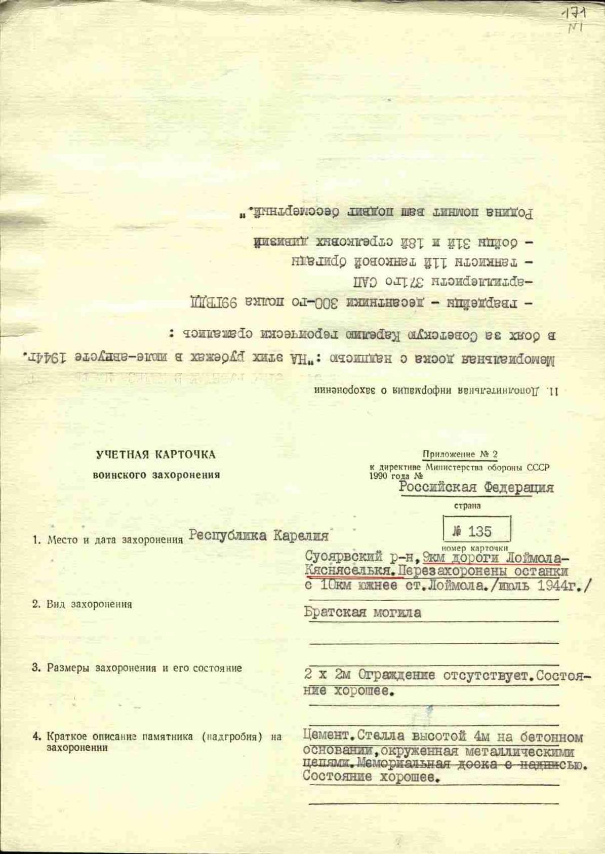 Номер захоронения в ВМЦ