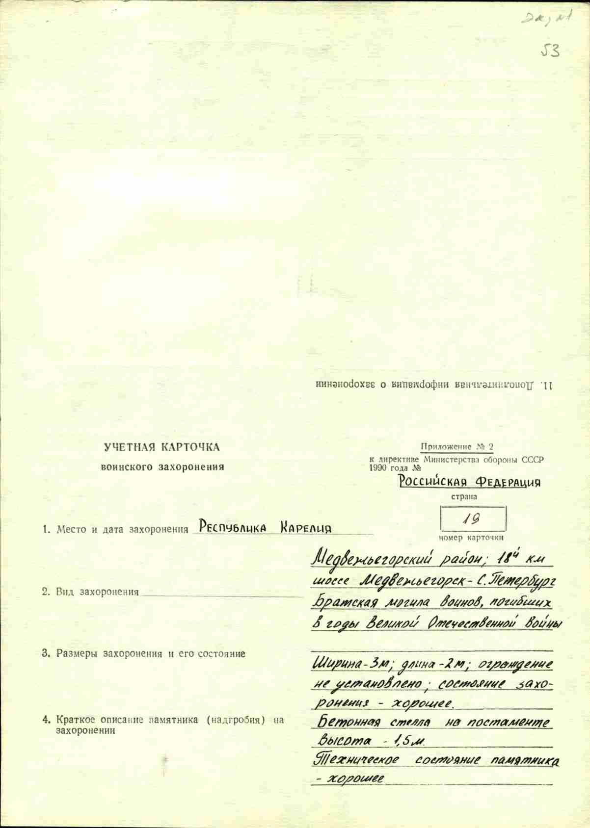 Номер захоронения в ВМЦ