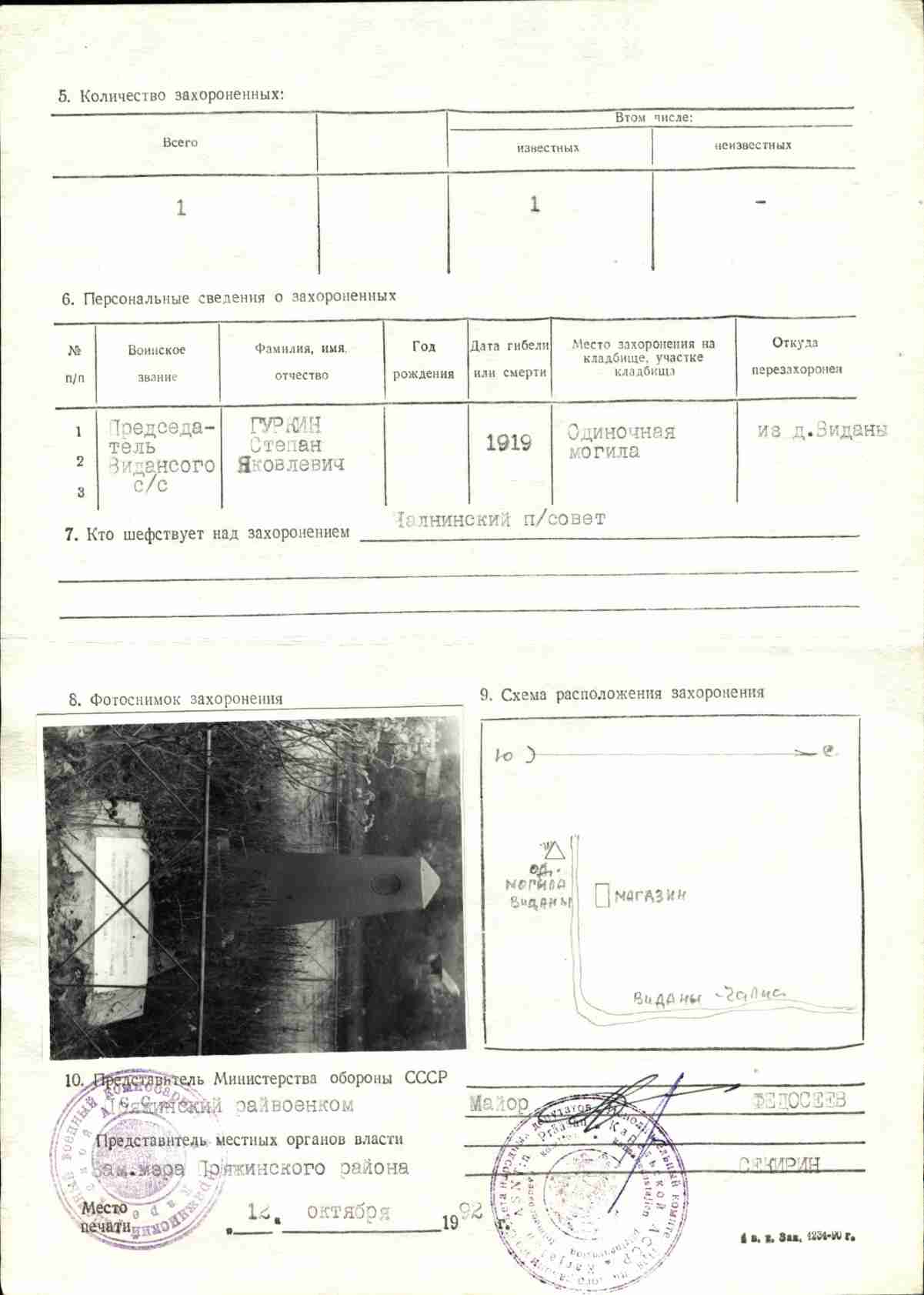 Номер захоронения в ВМЦ