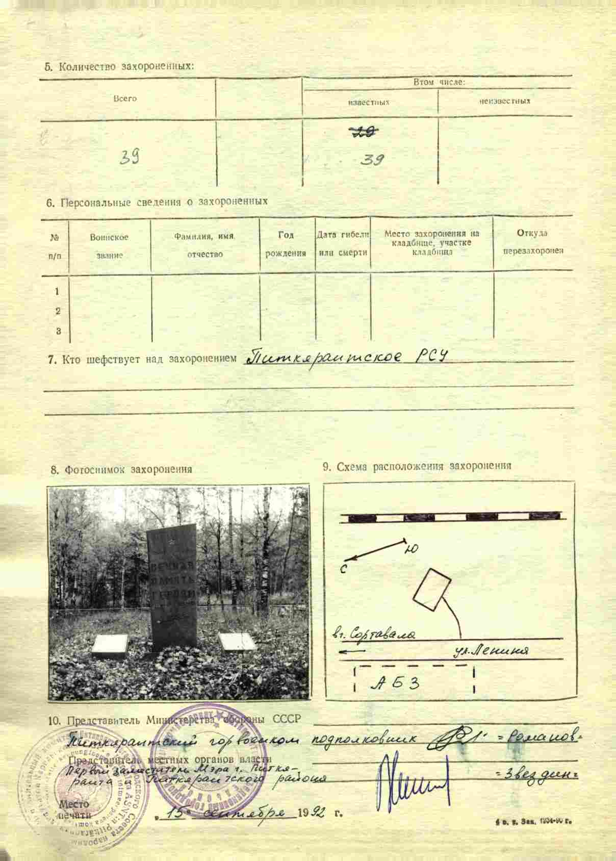 Паспорт места захоронения включает в себя отсканированный бумажный документ.