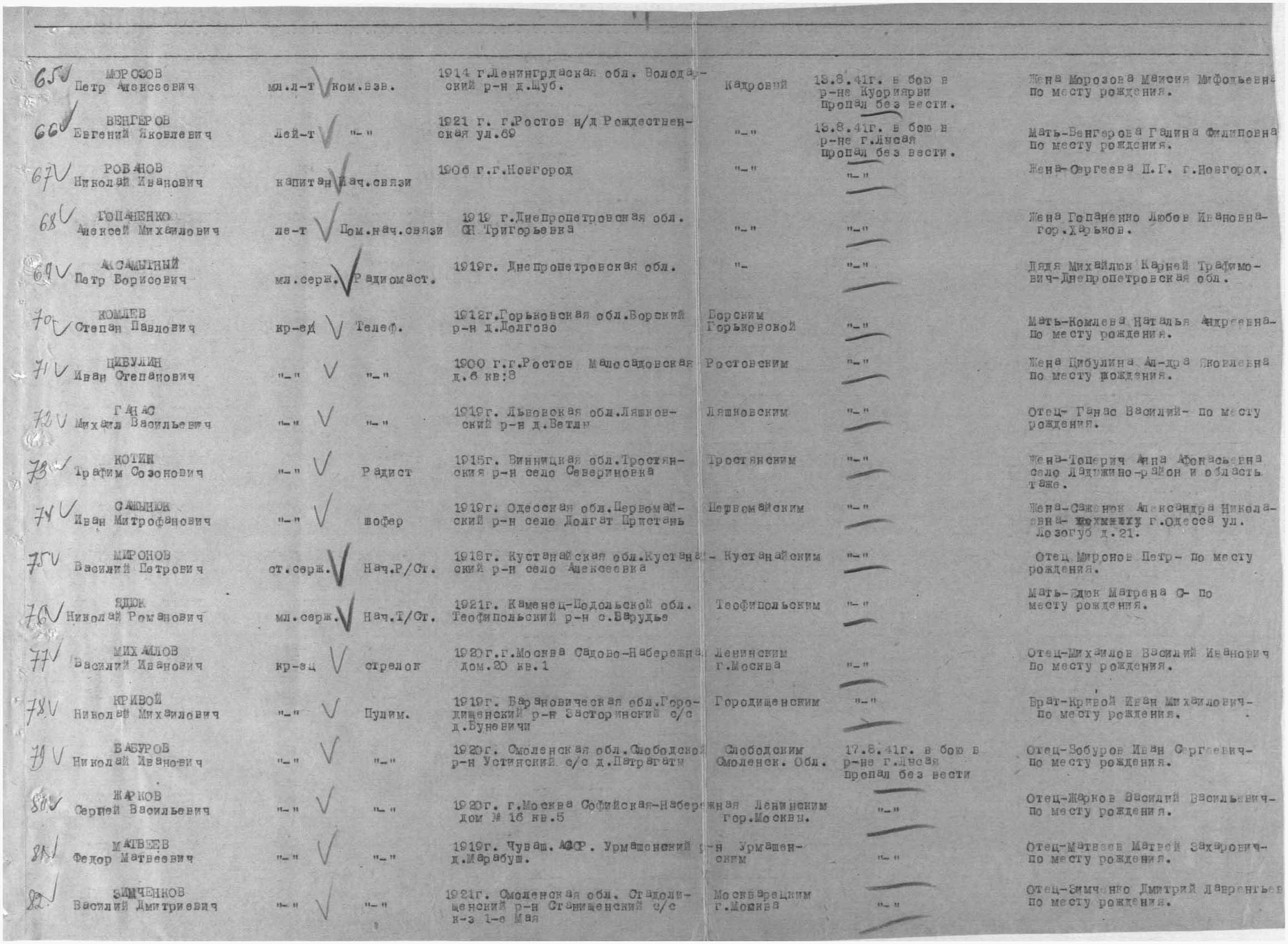 Место проживания родственников на момент призыва