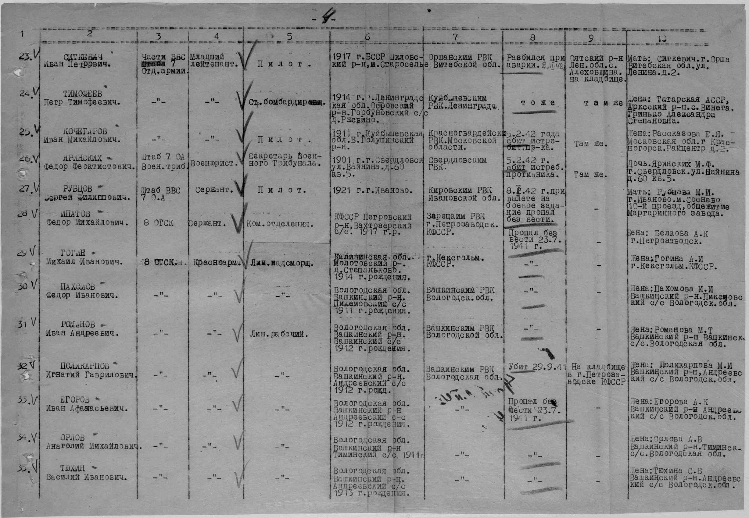 Жена поликарпова М.И., Вологодская обл., Вашкинский р-н, с/с Андреевский