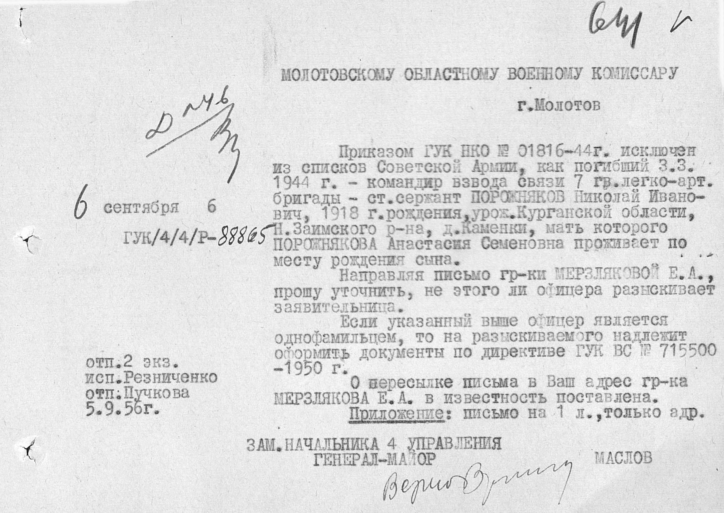Молотовский ОВК, Молотовская обл.