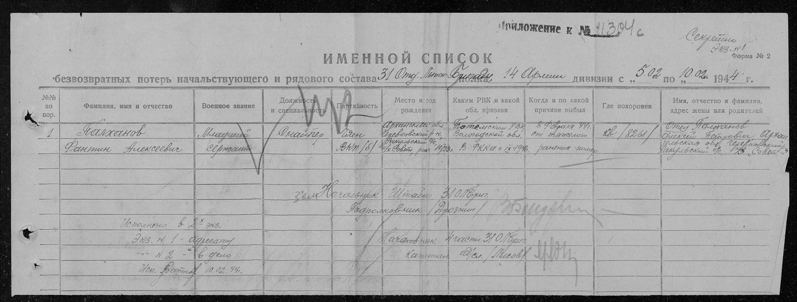 Отец Палханов Алексей Петрович, Архангельская обл., Черевковский р-н, Ракульский с/с, к/з Совет