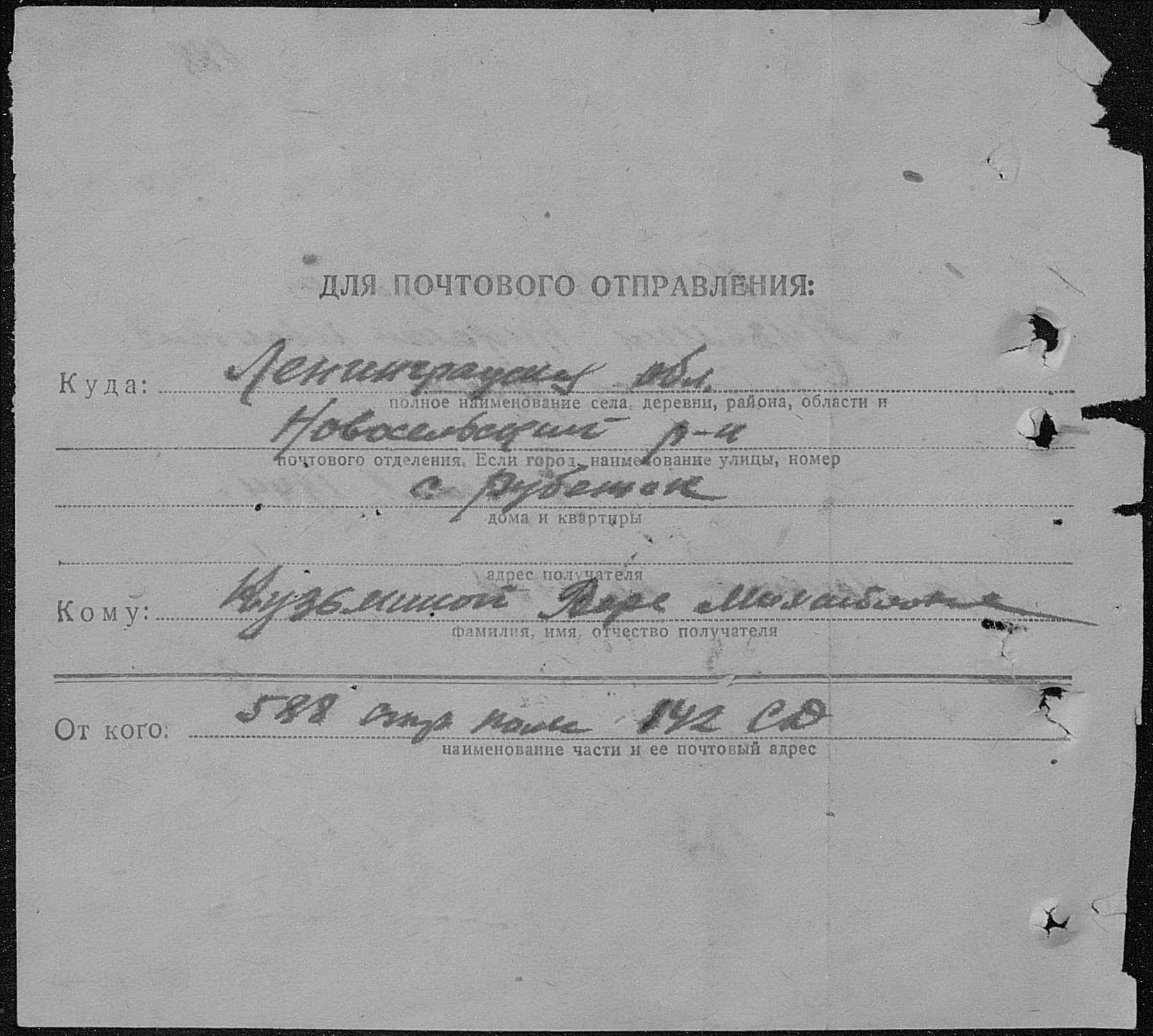 Место проживания родственников на момент призыва