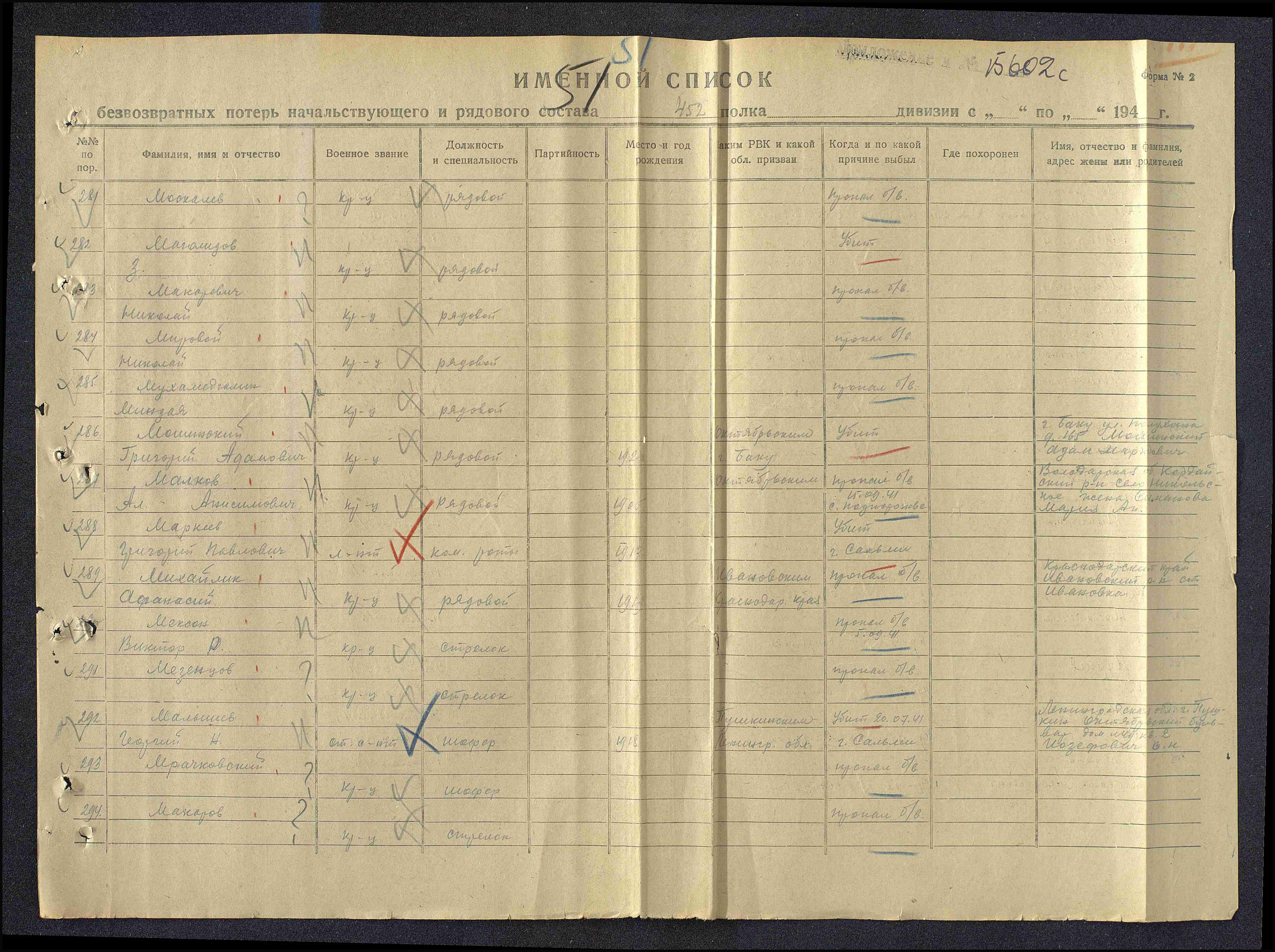 Место проживания родственников на момент призыва