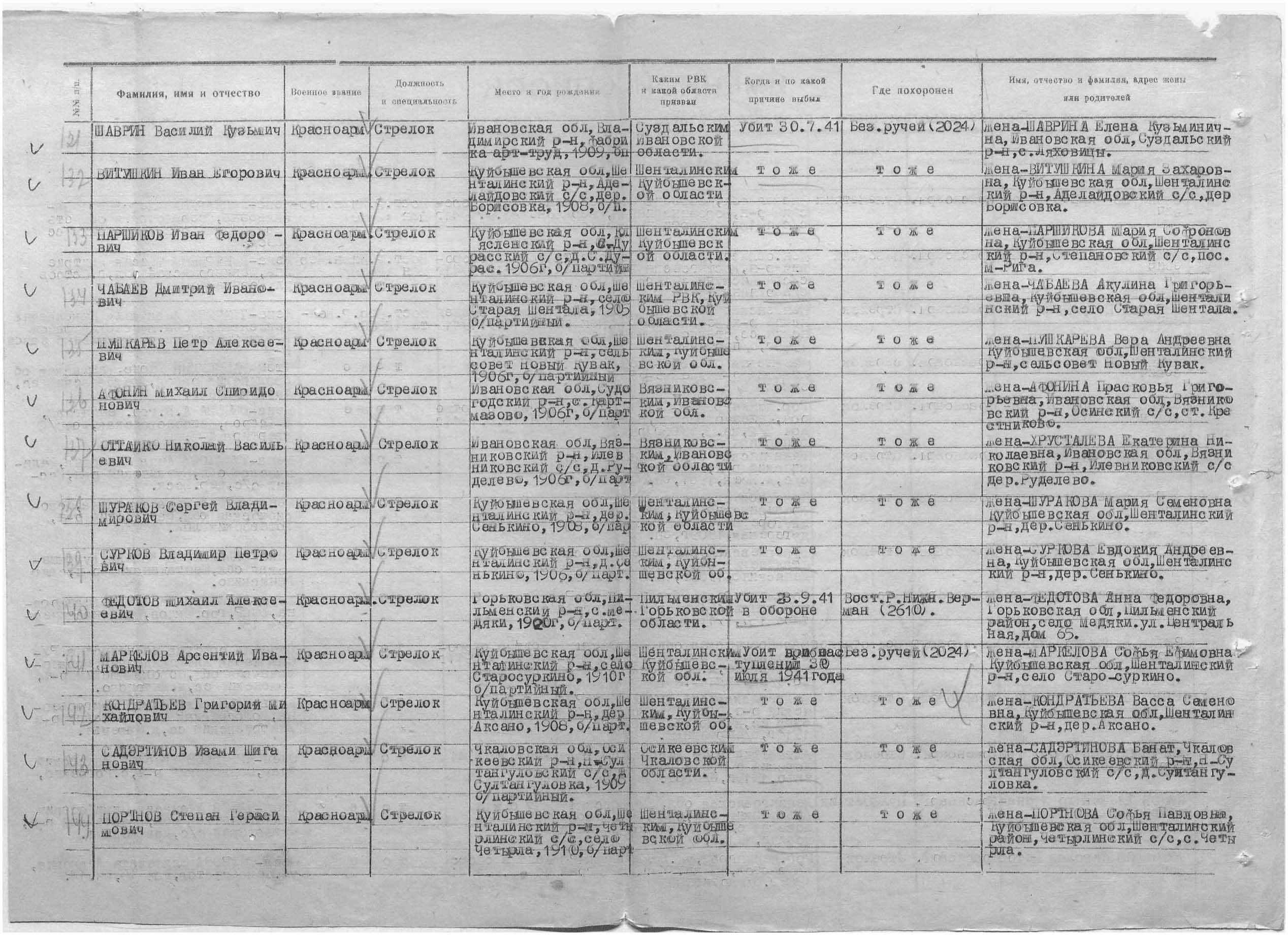 Место проживания родственников на момент призыва