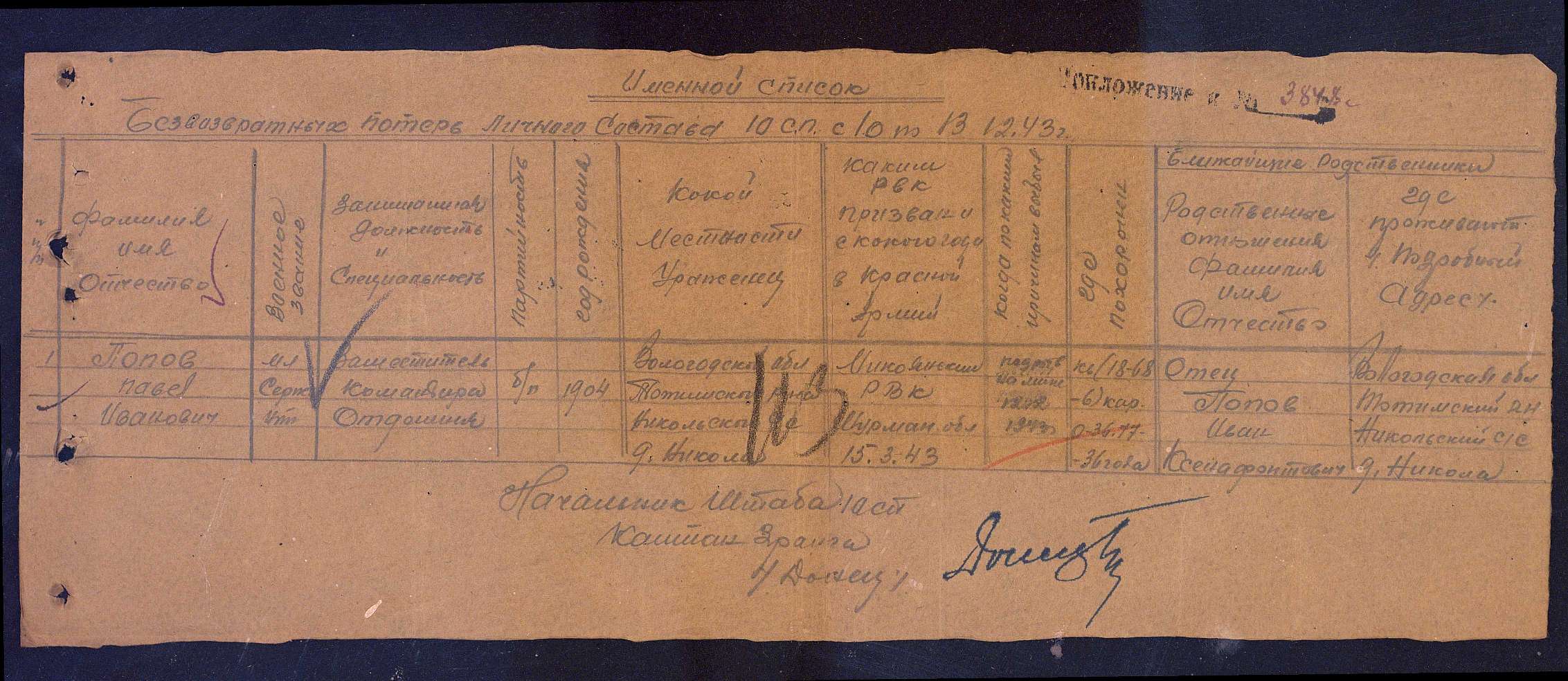 Отец Попов Иван Ксенофонтович, Вологодская обл., Тотемский р-н, Никольский с/с, д. Никола