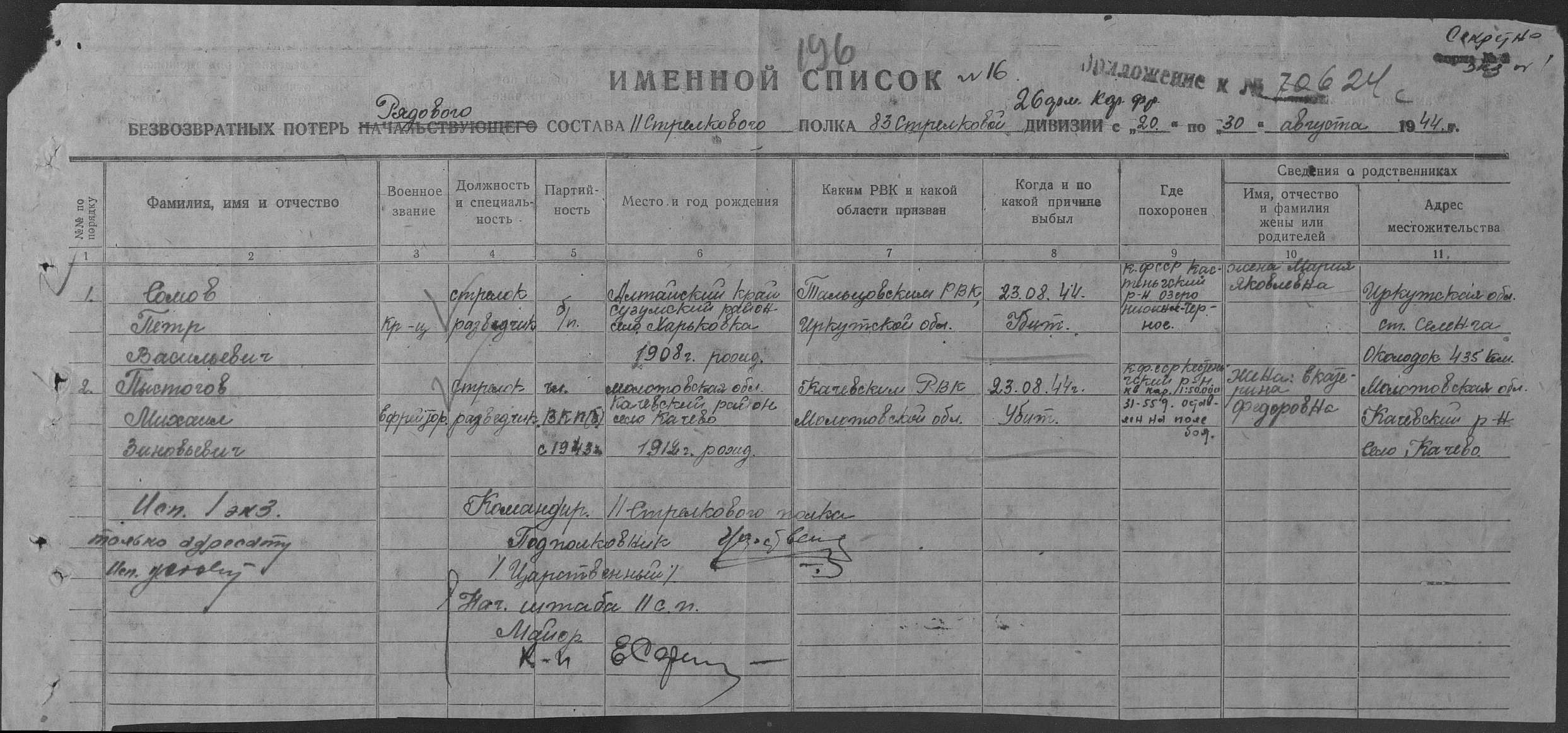 Захоронен: оставлен на поле боя, Кестеньгский р-н, КФССР