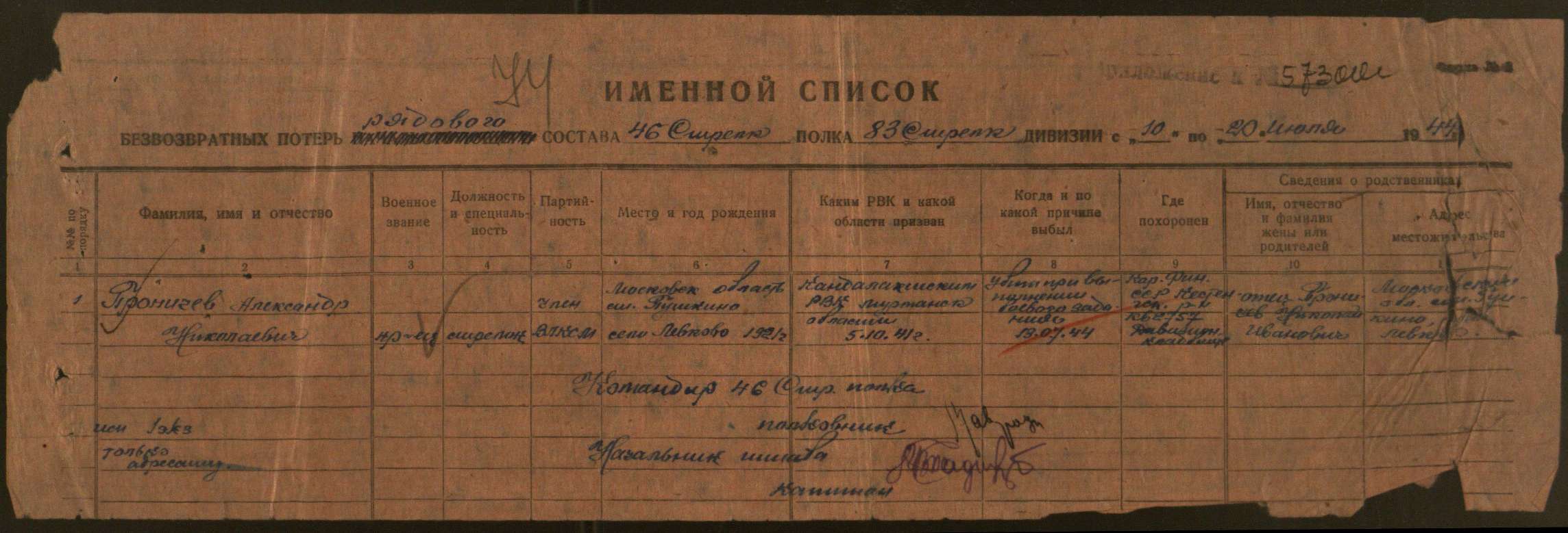Московская обл., ст. Пушкино, с. Левково; отец-Проничев Николай Иванович