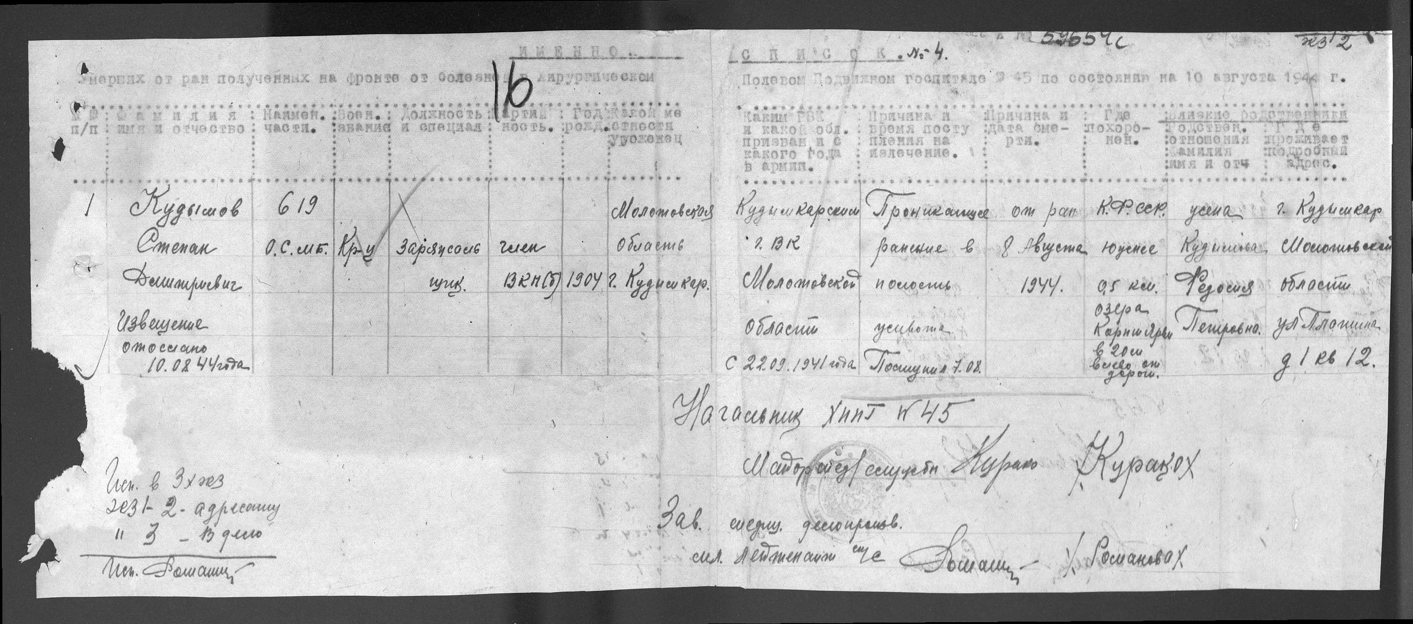 22.09.1941, Кудымкарский ГВК, Молотовская обл., Коми-Пермяцкий НО, г. Кудымкар