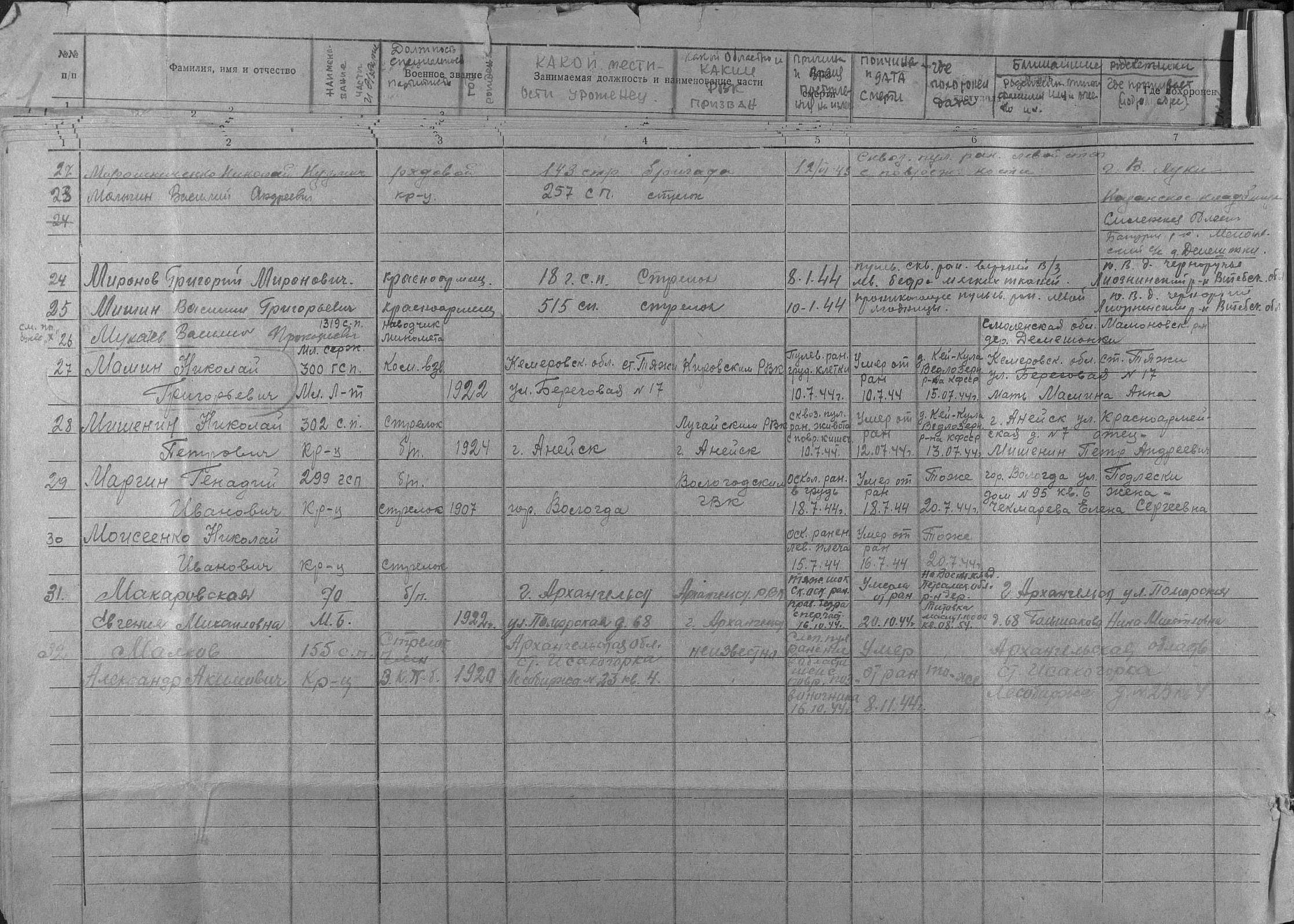 ЦАМО; Списки из Военного комиссариата Республики Карелия