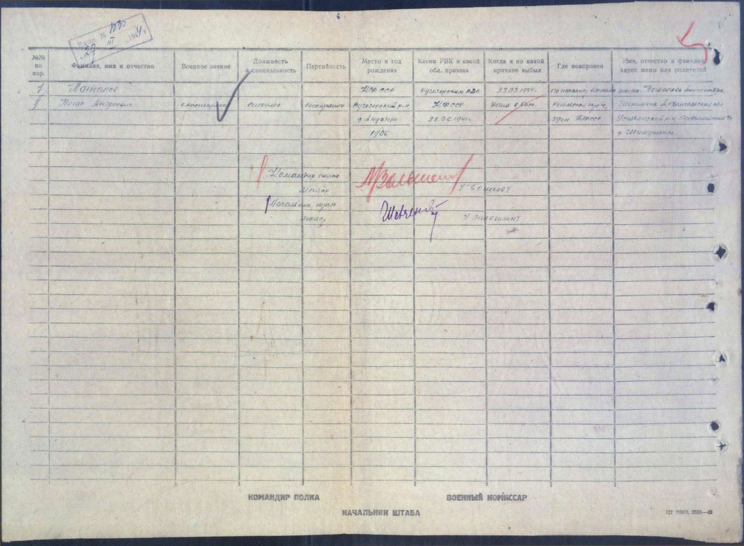 22.06.1941, Ругозерский РВК, Карело-Финская ССР, Ругозерский р-н; Ругозерским РВК