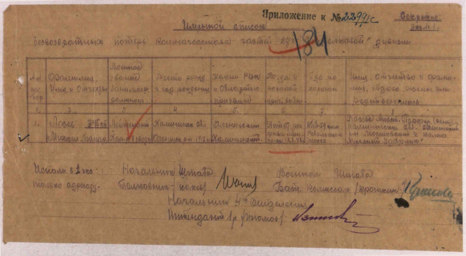 Калининская обл., Оленинский р-н, Мостовский с/с, колхоз "Красный ударник"; Жена: Козева Анастасия Парфирьевна