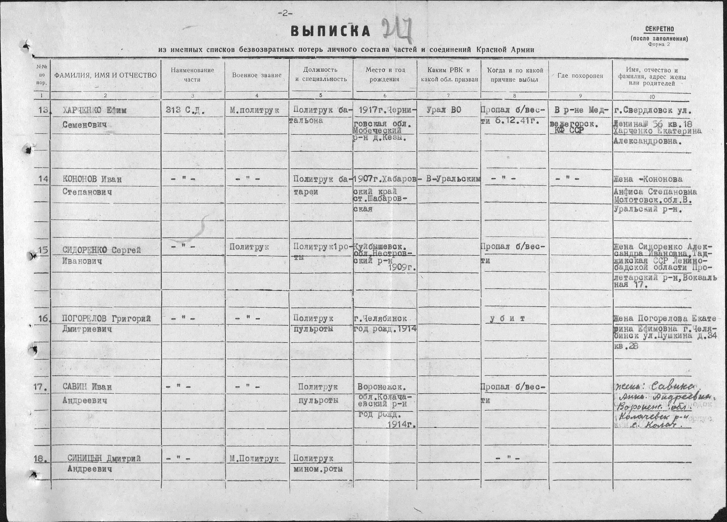 Место проживания родственников на момент призыва
