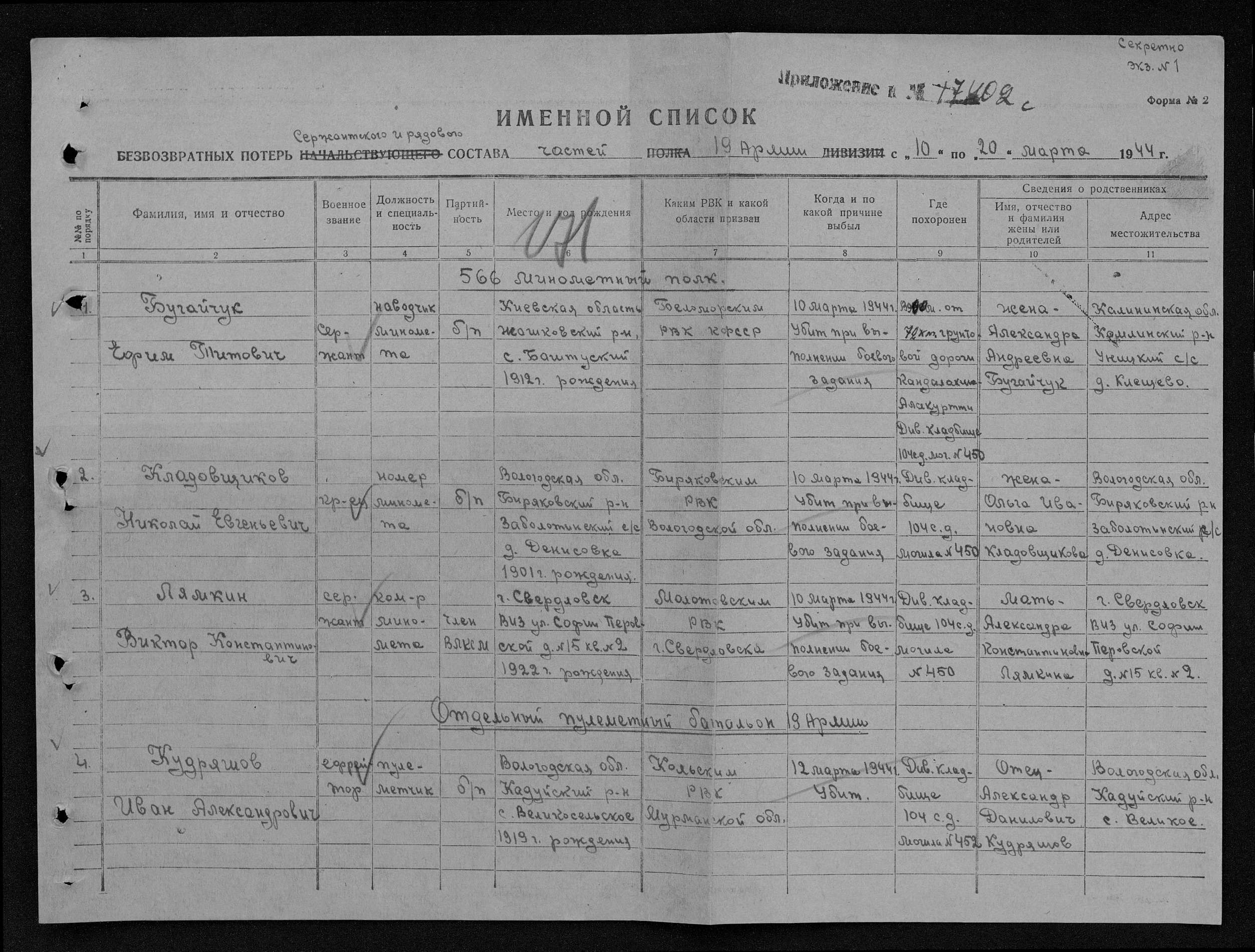 Место проживания родственников на момент призыва