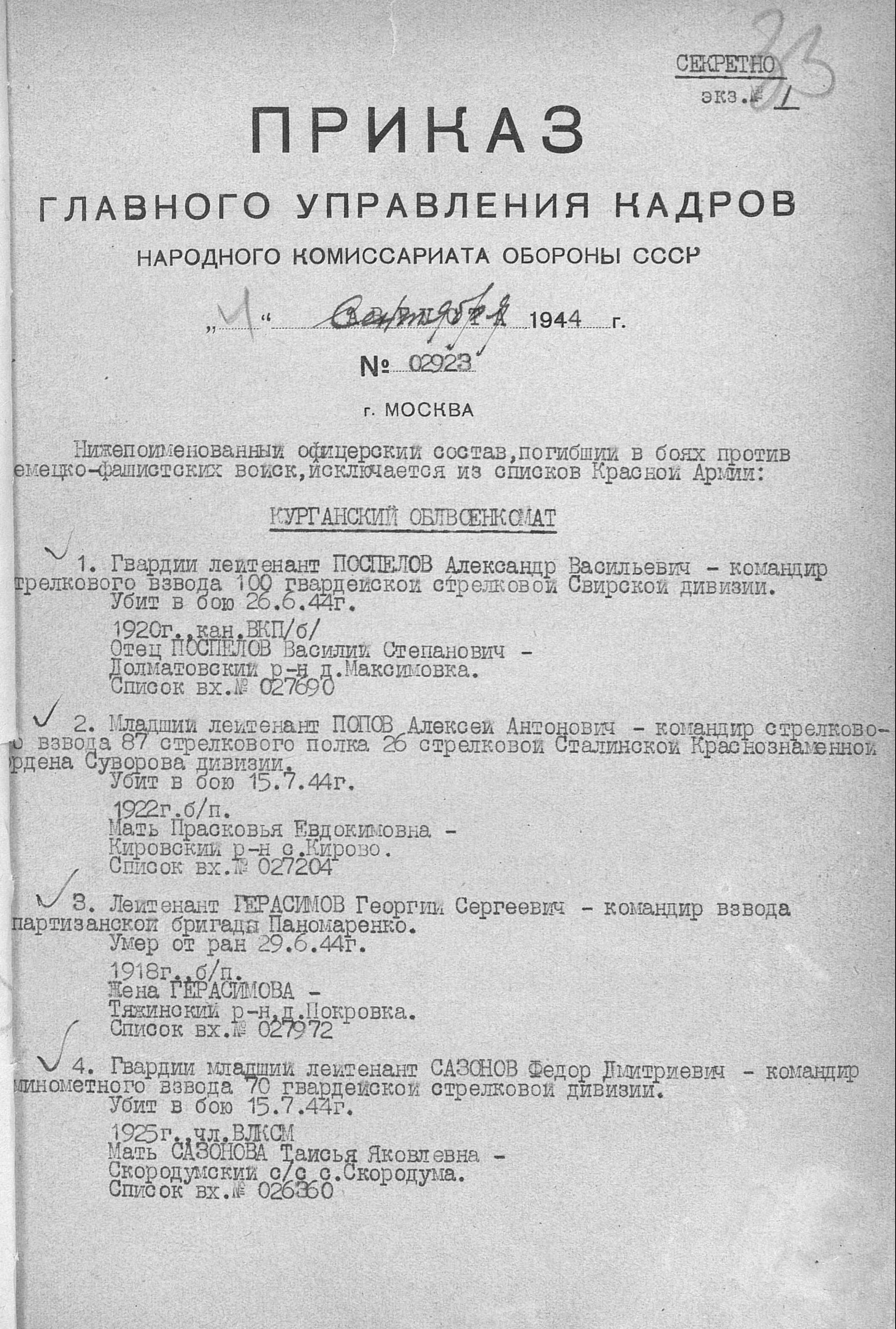 Курганская обл., Долматовский р-н, д. Максимовка; отец-Поспелов Василий Степанович