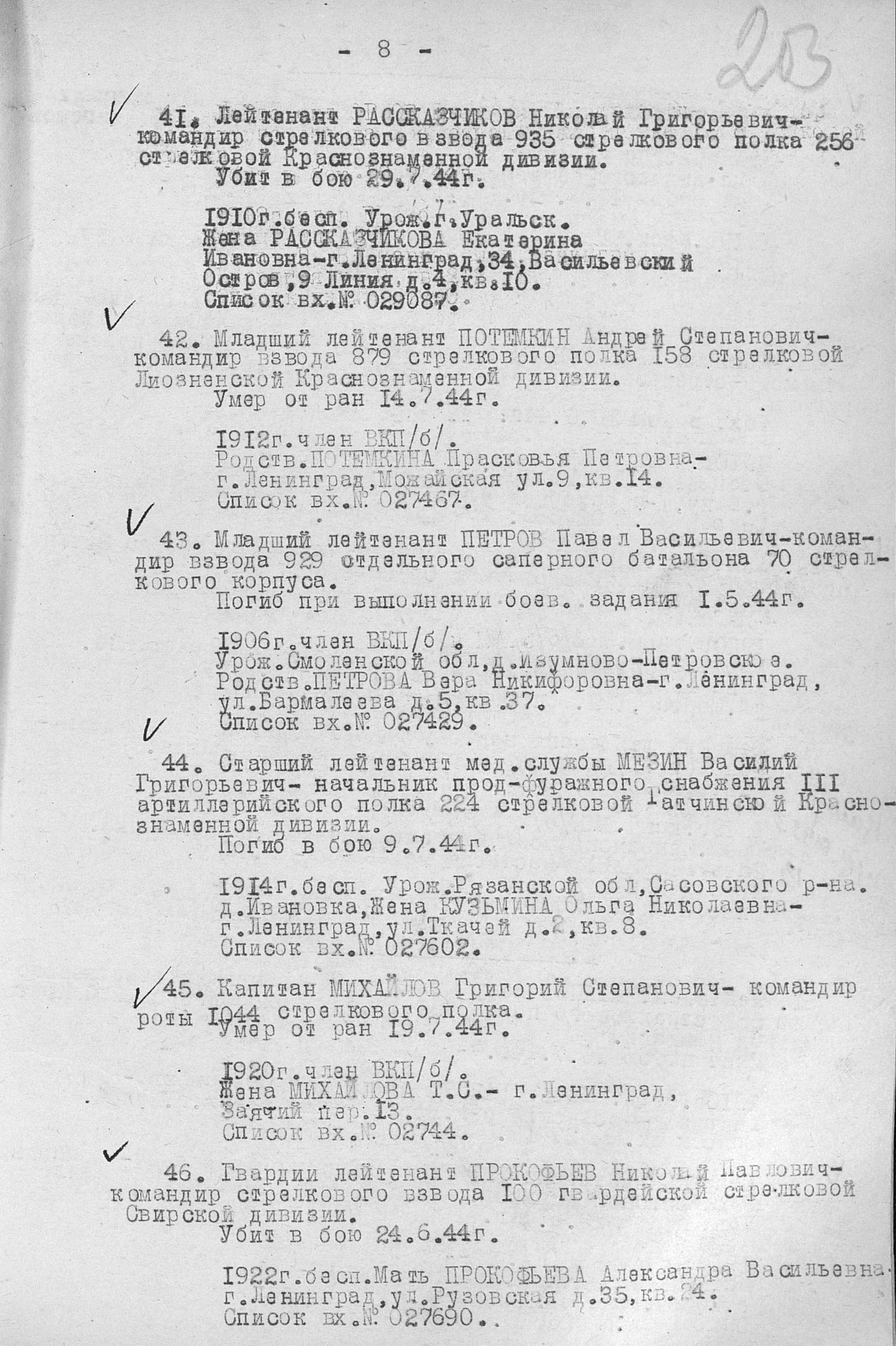г. Ленинград, ул. Рузовская, 35-24; мать-Прокофьева Александра Васильевна