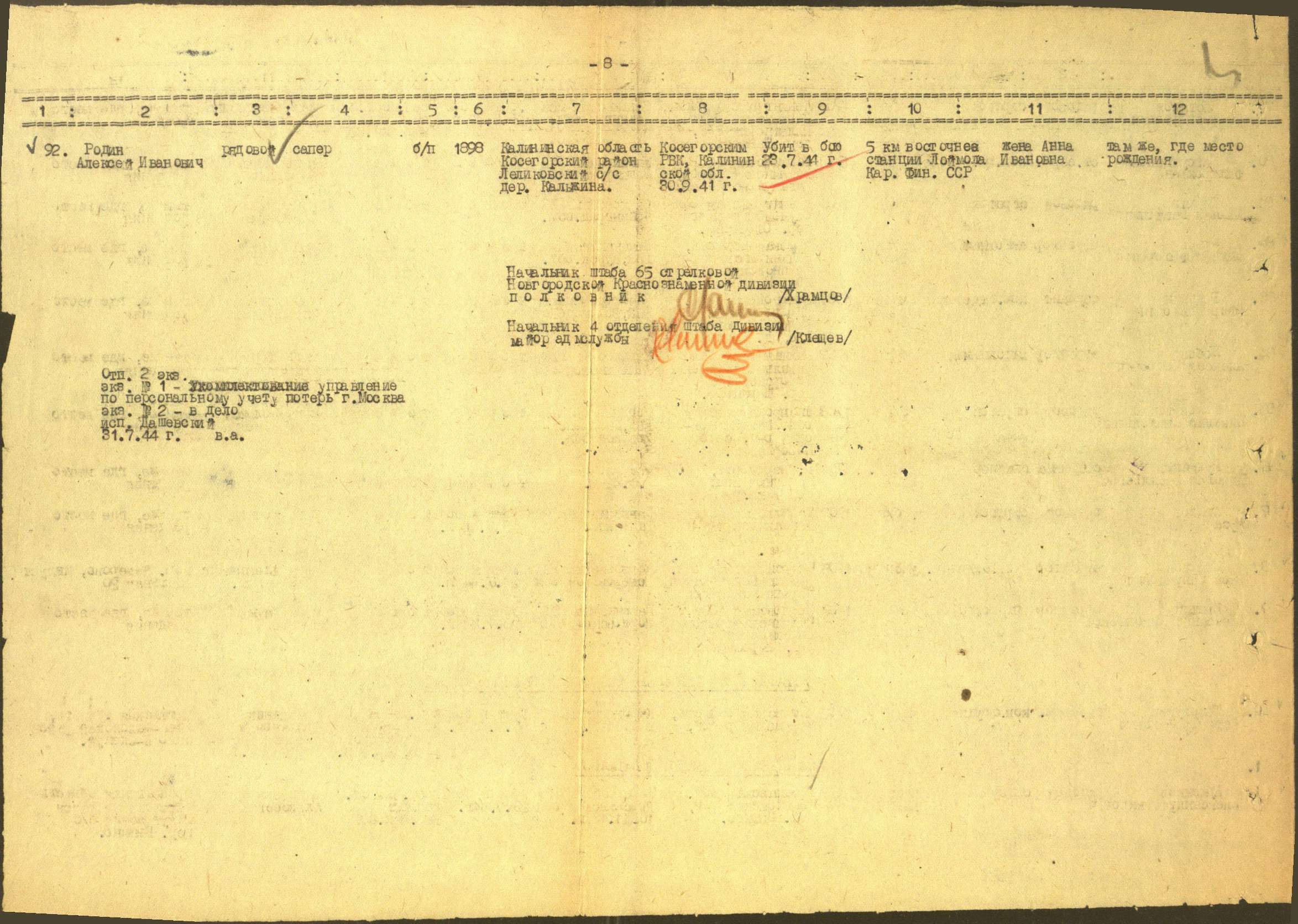 30.09.1941, Кесово-Горский РВК, Калининская обл., Кесово-Горский р-н