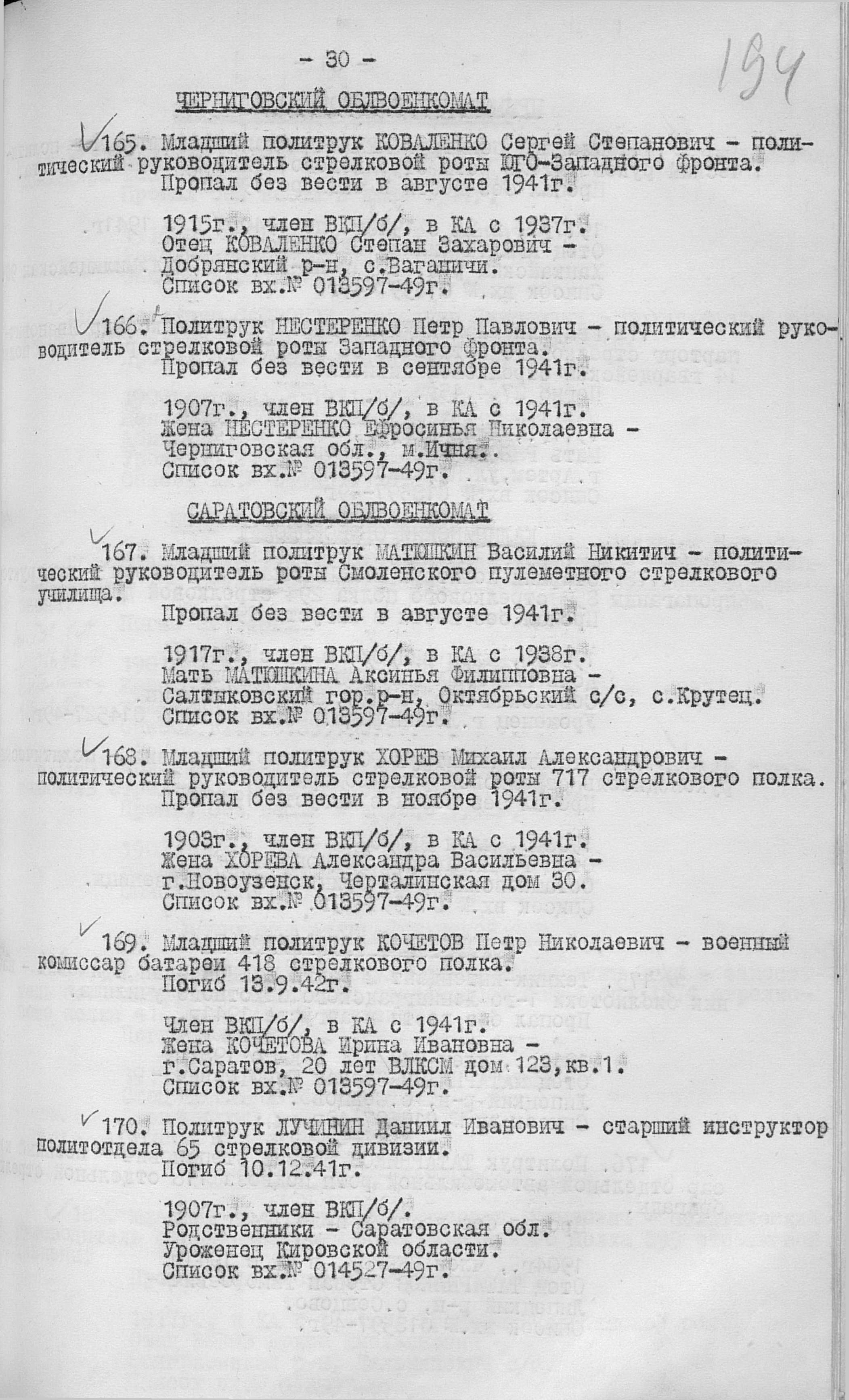 Место проживания родственников на момент призыва