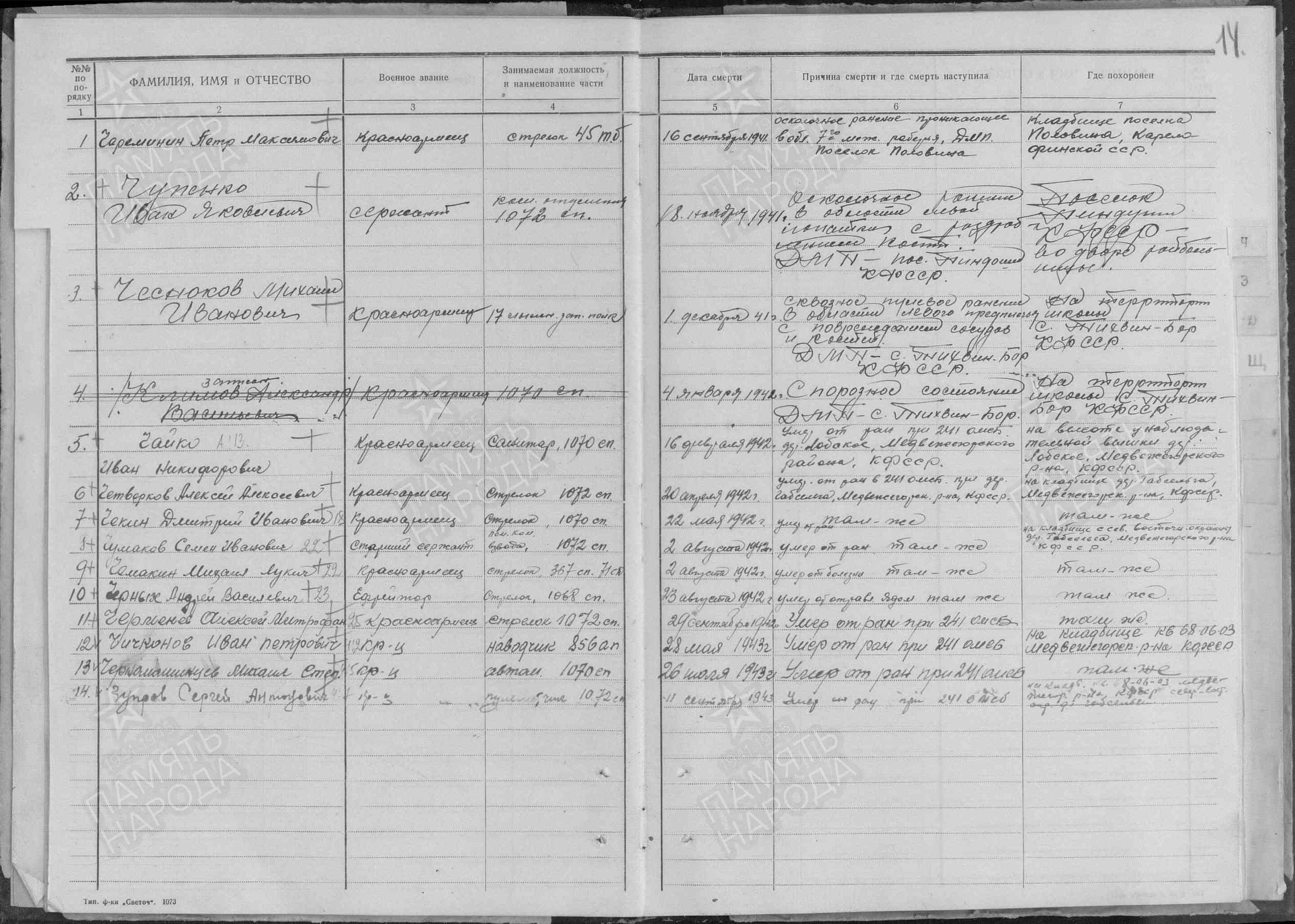 погибшим на территории Республики Карелия в